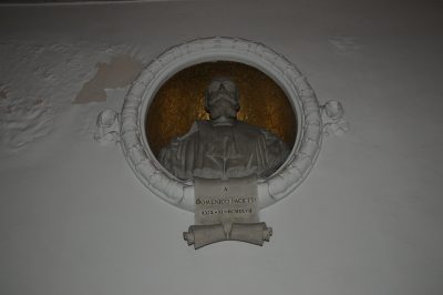La notizia è che molti di quei reperti, per lo più targhe commemorative, sono ancora nell’edificio centrale del nosocomio, un immobile che assieme a quello adiacente è oggetto di “infiniti” lavori (in forte ritardo) per la realizzazione da parte dell’Asur proprietaria di una residenza protetta per anziani e di una sanitaria assistita oltre che di laboratori di medicina. Altro prezioso ed eterogeneo materiale d’epoca è invece delocalizzato separatamente in vari uffici del Regionale di Torrette. Percorsi pochi metri, sotto il pavimento dell’ingresso principale in largo Cappelli del fu ospedale civile, giace dimenticata la sua prima pietra, contenente una pergamena con dedica e firma degli allora sovrani Vittorio Emanuele III ed Elena, giunti appositamente ad Ancona il 24 giugno 1906 per la cerimonia d’avvio del cantiere. Lungo le pareti delle due rampe di scale che si aprono ad “elle”, ecco le lapidi in pietra, un paio plurisecolari, con scritte in latino, una più piccola con vertice trapezoidale, del 1640, e una più grande di forma orizzontale e testo molto lungo collocata nel 1646. Entrambe dedicate a Costantino Maurodini, mercante greco di Costantinopoli morto ad Ancona nel 1589, il quale lasciò un’eredità alla Confraternita della Misericordia e Morte; le rendite di quel lascito consentirono alla Confraternita di erigere tra il 1645 e il 1676 l’ospedale della Santissima Trinità, che si fuse col precedente, dedicato a Sant’Anna, fondato nel 1567 dal condottiero, anche lui di Costantinopoli, Alessio Lascaris.