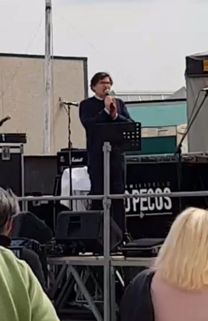 Simone Pugnaloni (Pd) ieri mattina al banchetto di OsiAmo, una lista della sua coalizione, in corso Mazzini