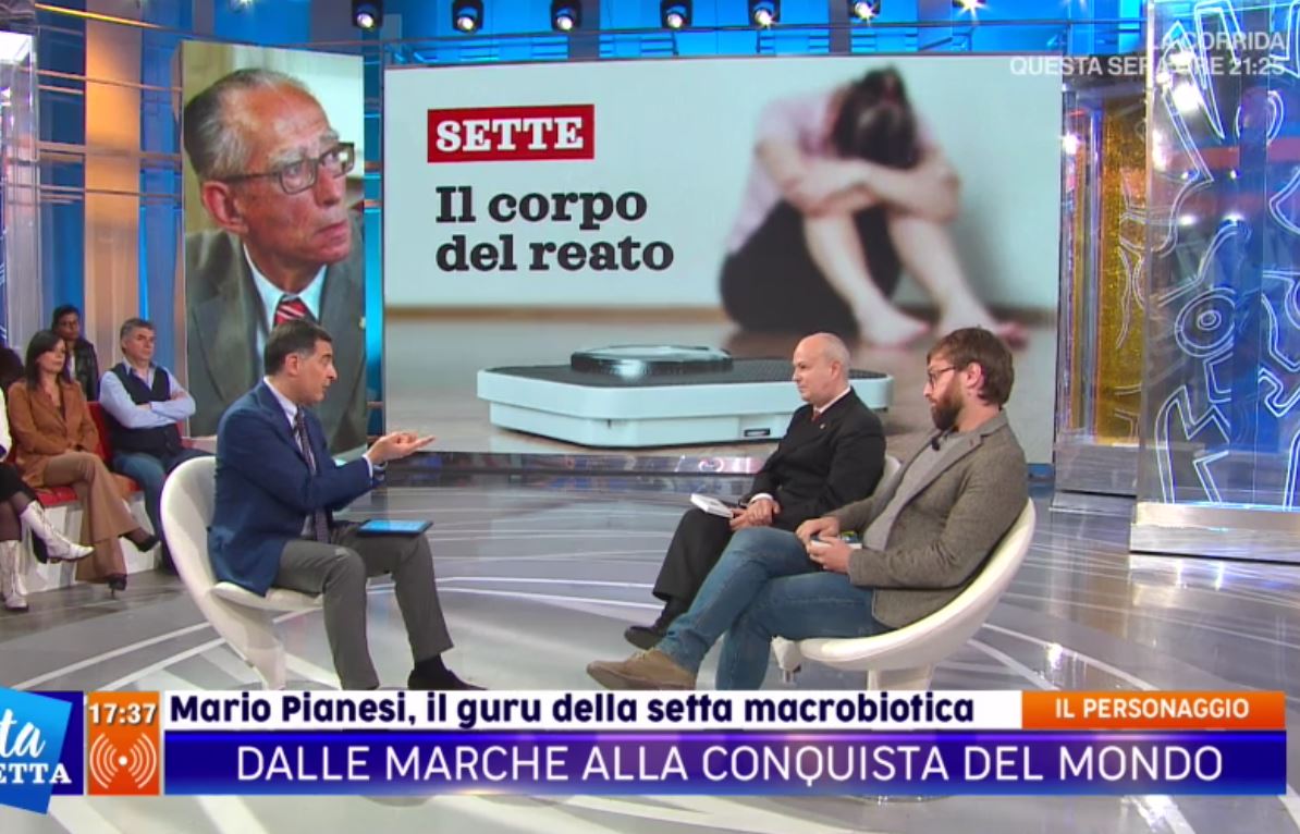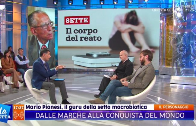 “Dentro la psico-setta macrobiotica”, Mauro Garbuglia in un libro ha raccontato gli anni vissuti nel movimento di Mario Pianesi (finito al centro di una indagine delle procure di Ancona e Forlì). Questo pomeriggio Garbuglia, che per 25 anni ha fatto parte dell’organizzazione, è stato alla trasmissione di Rai Uno, la Vita in diretta, proprio per parlare del testo che ha realizzato con la sua casa editrice, la Nisroch, e che sarà alla Fiera del libro di Torino. «Ero all’inferno e ora che sono uscito sto in paradiso. Finalmente sono libero» ha detto Garbuglia al conduttore Tiberio Timperi. Ha raccontato delle regole che doveva rispettare chi faceva parte del movimento: «Erano molto varie, ad esempio non si poteva andare a ballare, non si potevano tingere i capelli» ha detto Garbuglia citando alcuni esempi. «E se uno non rispettava quelle regole?» ha chiesto Timperi.