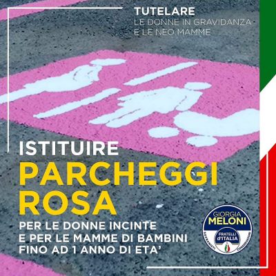 Parcheggi riservati alle donne incinta e alle neomamme: passa la mozione proposta dai consiglieri di Fratelli d’Italia e sottoscritta dalla Lega e da Forza Italia. «Siamo molto soddisfatti che la nostra proposta di istituire parcheggi rosa gratuiti per le donne in gravidanza e le neomamme di bambini fino ad un anno di età sia stata approvata – ha detto Angelo Eliantonio, capogruppo di Fratelli d’Italia e primo firmatario della mozione sottoscritta anche da Lega e Forza Italia, approvata dalla Commissione congiunta politiche sociali e urbanistica che si è svolta martedì 30 aprile alla presenza dell’assessore Foresi – . La nostra è una battaglia di civiltà ed è coerente con quelle che sono le nostre priorità da sempre; per noi le politiche per agevolare le mamme sono elementi centrali per una comunità cittadina. Nonostante mozioni analoghe furono già discusse e approvate dal Consiglio comunale nelle passate sindacature, i parcheggi rosa non sono mai stati realizzati. La nostra proposta è più estensiva rispetto alle precedenti e finalmente, come confermato dall’assessore competente Foresi, potrebbe essere presto realtà anche ad Ancona. Il testo che approderà a Palazzo degli Anziani per l’approvazione finale subirà alcune modifiche per permettere di specificare in maniera esatta il numero degli stalli gratuiti, il limite orario di sosta e le zone nevralgiche dove verranno istituiti».