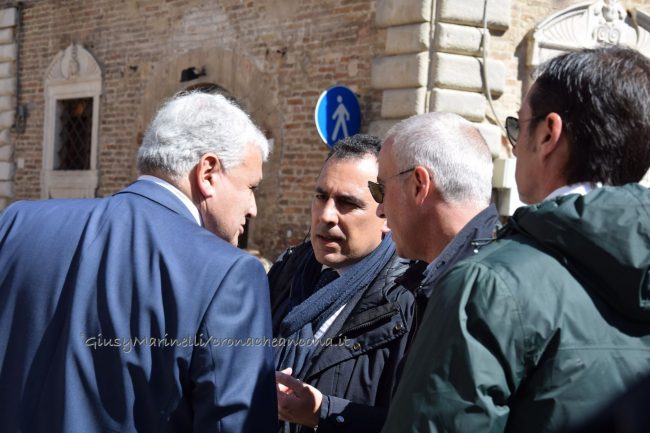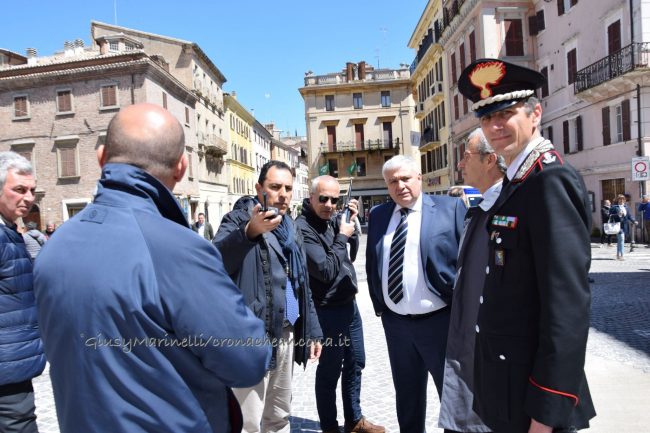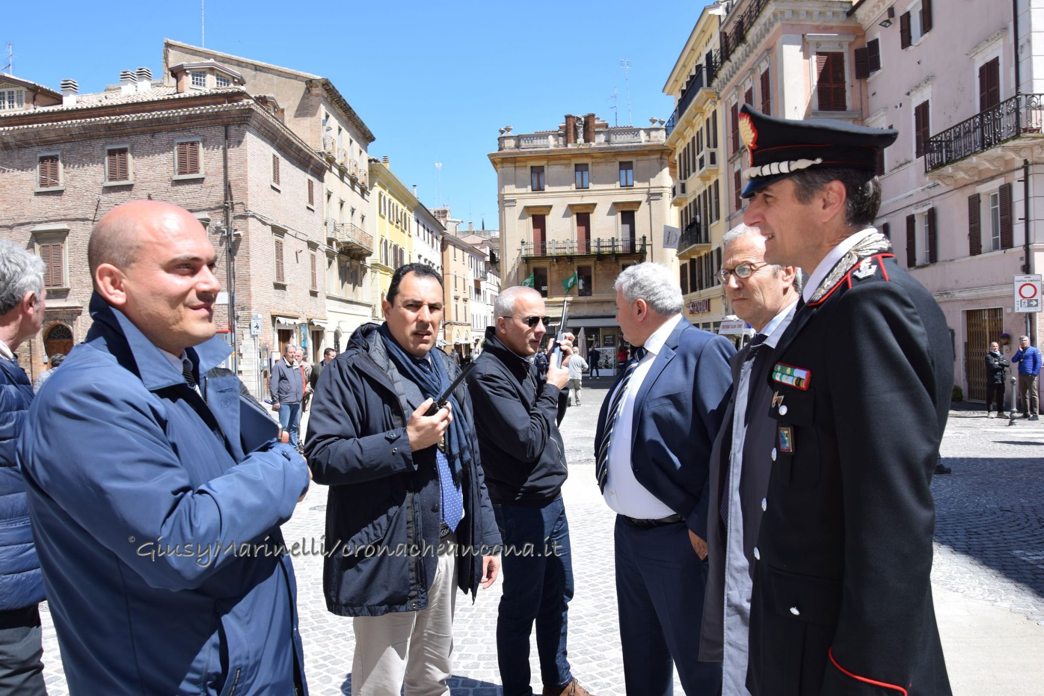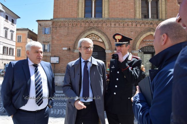 Il prefetto di Ancona con il questore di Ancona, Claudio Cracovia con il vice questore Giuseppe Todaro, il colonnello Carrozza del comando provinciale dei carabinieri di Ancona, ed il sindaco uscente di Osimo, SImone Pugnaloni (Pd)