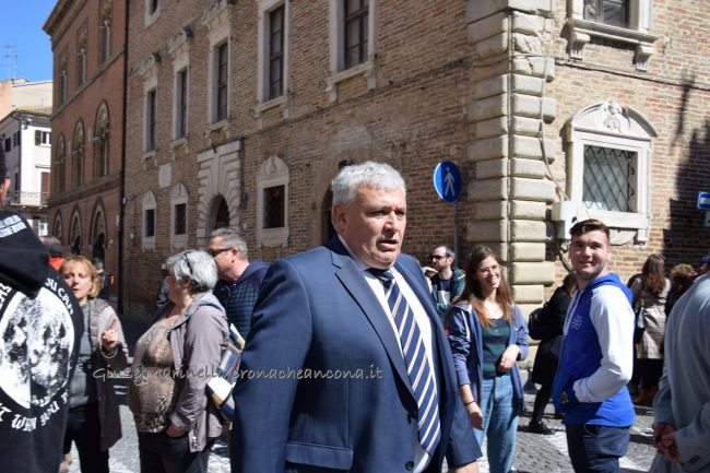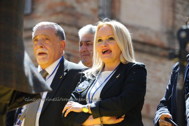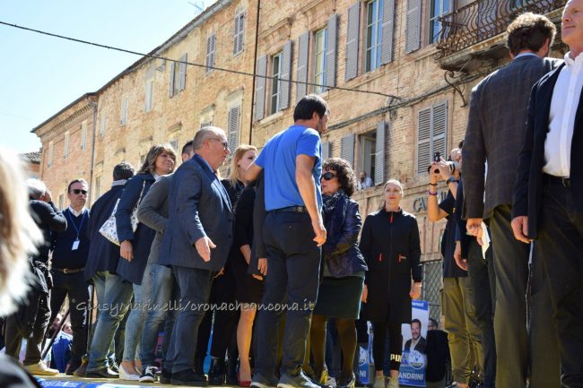 Le ultime parole di ringraziamento del leader leghista sono andate alle forze dell’ordine che hanno garantito il servizio d’ordine in maniera impeccabile, nel rispetto di tutti e di ogni libera espressione. In piazza Dante sono stati sequestrati alcuni cartelli ai manifestanti, un gruppo di circa 50 esponenti provenienti dai centri sociali di Ancona e Falconara (Falcatraz) dal gruppo L.u.p.o di Osimo e da alcuni operatori e migranti del Gus di Osimo. Il dissenso è stato solo gridato e non si sono registrati atti di violenza. Il dispositivo di sicurezza ha previsto la presenza ad Osimo anche del questore Claudio Cracovia e del prefetto Antonio d’Acunto, del comandante provinciale dei carabinieri Cristian Carrozza. Gli uomini del vice questore Giuseppe Todaro, vertice del commissariato di Osimo, hanno lavorato in tandem con i colleghi di Ancona e Senigallia (il reparto mobile) ma anche con carabinieri, finanzieri della tenenza di Osimo e agenti della Polizia locale. Tutti i vicoli d’ingresso alle piazze sono stati bloccati da mezzi. In mattinata erano state segnalate lamentele dei dipendenti del Poliambulatorio, evacuato alle 12.30 per permettere le operazioni di bonifica dei luoghi e di automobilisti per le auto in divieto di sosta portate via dai carro attrezzi. In attesa dell’arrivo di Salvini erano sfilati sul palco di piazza del Comune il candidato sindaco di Osimo, Alberto Maria Alessandrini e la sua squadra. A ruota il coordinatore provinciale Milco Mariani ha invitato a scattarsi un selfie collettivo al altri ‘sindaci’ in corsa nelle città della provincia di Ancona (Sassoferrato, Genga, Monte San Vito e Mergo) e della provincia di Macerata (Recanati, Castelsantangelo sul Nera e Appignano) e il candidato marchigiano del carroccio alle Europee, Mauro Lucentini di Montegranaro. Tra i sostenitori storici ammessi sul palco anche Lilliana, una 91enne di Porto Recanati, ha avuto l’onore di essere tra le prime ad abbracciare il ‘comandante’. (servizio aggiornato alle 17.47)