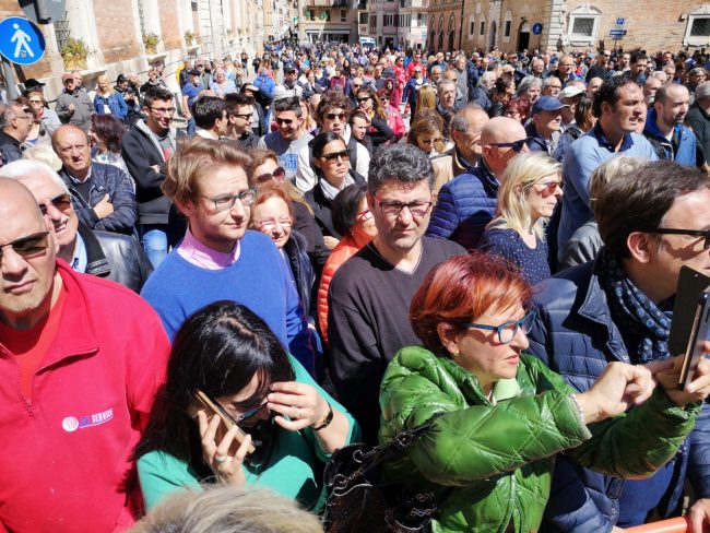 Prima dei saluti finali, l’annuncio sulle prossime riforme. Due dossier entro l’estate: uno per raddoppiare le sanzione e pene per chi abbandona e maltratta gli animali, l’altro sul contrasto alle truffe ai danni degli anziani. «E poi una commissione d’inchiesta su come funzionano le case famiglia perché sono troppi i bambini portati via a mamme e papà – ha chiuso il vice premier- Ragionate quindi con la vostra testa a Osimo. Il 26 maggio è vicino e in democrazia per fortuna scelgono i cittadini, scelgono i marchigiani: liberate la vostra terra da una sinistra che ne ha combinate di tutti i colori. Il prossimo obiettivo è mandare a casa la sinistra che qui ha chiuso gli ospedali perché sul diritto alla salute non si scherza. Ma questi fischiano anche quando parlo di ospedali. Ma se stanno male dove vanno? Al centro sociale?» . Tripudio di applausi e poi centinaia di selfie di rito. Salvini ha lasciato Osimo poco prima delle 17 alla volta di Montegranaro.