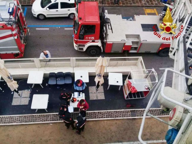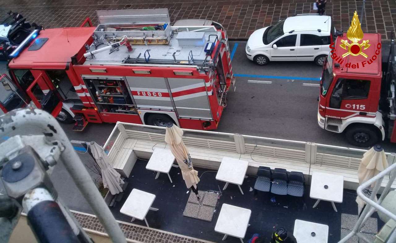 L’allarme è scattato alle ore 6 di stamattina, quando i vigili del fuoco sono intervenuti in un palazzo di Corso Matteotti, al civico 99, per domare l’incendio scoppiato su un quadro elettrico. Per cause in fase accertamento, sono andati a fuoco i contatori dell’energia elettrica nel vano scala di una palazzina di tre piani. La tromba delle scale è stata invasa dal fumo e mentre i pompieri spegnevano le fiamme che uscivano dal portone, utilizzando sia la scala italiana che l’autoscala, cinque residenti nell’immobile, di cui una con problemi di deambulazione, sono stati portati in salvo e consegnati alla cure del personale del 118. Tutti si erano rifugiati sui terrazzi in attesa dei soccorsi. Nel palazzo ci sono 6 appoartamenti  ma solo 3 al momento sono abitati. Al pronto soccorso sono arrivati in 8, anche un bambino, con una sospetta intossicazione da fumo per aver inalato l’aria resa irrespirabile a dall’incendio. Successivamente i vigili del fuoco hanno messo in sicurezza lo scenario dell’incendio e dichiarato non fruibile l’intero stabile, in quanto il fumo sprigionato dall’incendio ha invaso sia la pizzeria al pianoterra che gli appartamenti sovrastanti. Sul posto anche una pattuglia dei carabinieri.