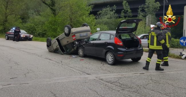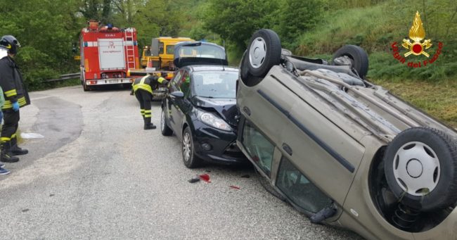 Nel tardo pomeriggio di ieri, 14 maggio, alle ore 19 circa, i vigili del fuoco sono intervenuti a Fabriano, sulla ex SS76 nei pressi del bivio Valleremita per per soccorrere gli automobilisti coinvolti in un incidente stradale. Lo scontro ha coinvolto una Ford Fiesta e una Fiat Panda. Una delle due auto si è rovesciata sul tetto dopo l’impatto, con il conducente rimasto bloccato all’interno. I vigili del fuoco hanno soccorso il conducente, che dopo le prime cure sul posto è stato trasportato dal personale del 118 al pronto soccorso dell’ospedale Profili di Fabriano, successivamente hanno messo in sicurezza le vetture entrambi alimentate a gas metano.