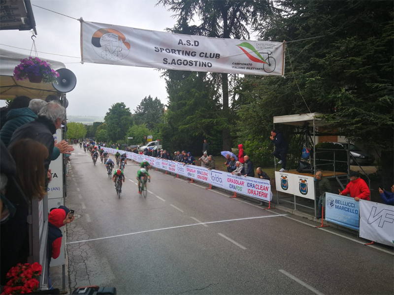 Con un perfetto gioco di squadra la Viris Vigevano piazza due pedine sul podio fidardense. Vince la gara con Gianmarco Begnoni in un avvincente spalla a spalla sull’avversario Enrico Zanoncello della Zalf.  Sul gradino più basso ancora un uomo della Viris, Sergei Rostovtsev. Finisce come tradizione in volata la prima giornata della “Due giorni marchigiana”, resa ancora più complicata dal maltempo che ha imperversato fin dai primi chilometri, con una pausa centrale per poi ricomparire nelle battute finali.
