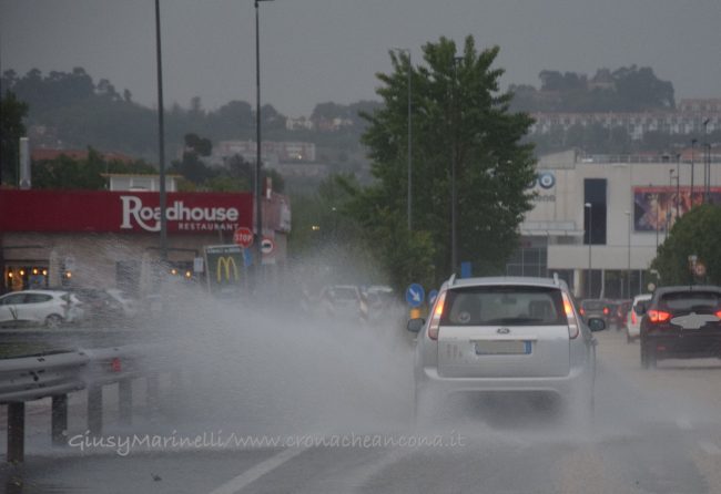 Il nubifragio che si è abbattuto su Ancona verso le 18.30 di oggi pomeriggio ha provocato uno smottamento sulla strada tra Sappanico e Montesicuro e reso intrasitabile per il fango, a Gallignano, una strada vicinale tra la Madonnina e il Vallone. I vigili del fuoco hanno ricevuto segnalazioni di allagamenti anche alla Baraccola. Ad Osimo, nelle frazioni di Osimo Stazione e a San Sabino, invece, dopo il temporale sono stati segnalati micro black out che, a intermittenza, hanno sospeso per pochi minuti la fornitura di energia elettrica anche al centtro commerciale CargoPier. I carabinieri hanno soccorso anche una automobilista finita fuori strada a Padiglione a causa dell’asfalto reso viscido dalla pioggia. Nel pomeriggio, su segnalazione di un allevatore, una squadra di pompieri di Ancona è accorsa al Coppo di Sirolo per cercare una pecora dispersa che si era allontanata dal gregge e che si temeva fosse caduta in una scarpata. Quando l’equipaggio è arrivato sul posto, l’erbivoro però si era già dileguato.
