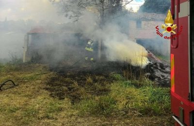 Nel primo pomeriggio di oggi, 20 Maggio, alle 14.45 circa, i vigili del fuoco del distaccamento di San Sabino sono intervenuti a Castelfidardo in via Concole per domare un incendio scoppiato su un manufatto non abitato di un’azienda agraria. Per cause in fase di ricostruzione, dal fuoco di un cumulo di potature che stava briciando alimentatio dalla raffiche di vento, ha lambito il casotto con il tetto in legno di circa 15 mq che si è incendiato. Nella dependance erano custodite alcune attrezzature agricole. I vigili del fuoco hanno spento le fiamme e bonificato tutta l’area dell’incendio. La struttura è stata dichiarata inagibile. Non si segnalano persone coinvolte e nei frangenti critici anche il proprietario dell’area agricola a eun dipendente hanno contribuito con mezzi dell’azienda a cercare di circoscrivere le fiamme.