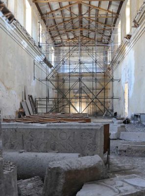Il lavoro di pulizia, una vera e propria bonifica, è stato completato la settimana scorsa da una ditta, sotto il coordinamento della Direzione riqualificazione urbana municipale, per una spesa di circa 12mila euro. Personale specializzato ha rimosso decine e decine di chilogrammi di guano e rifiuti di vario tipo (tra cui ferraglia e pezzi di cemento), disinfestato l’intera zona pavimentale, posizionato nuove reti anti-intrusione volatili in sostituzione di quelle ormai strappate e cadenti, accatastato in un angolo dell’edificio un gran numero di sedie di legno (tipo cinema) in parte riutilizzabili; quanto ai plurisecolari, preziosi reperti in pietra, su raccomandazione della Soprintendenza, ci si è limitati solo ad una spolveratura, in quanto la vera e propria pulizia a fondo (in caso accompagnata da restauri conservativi e ricostruttivi) sarà attuata in futuro da esperti in beni artistici e architettonici.