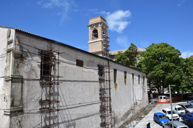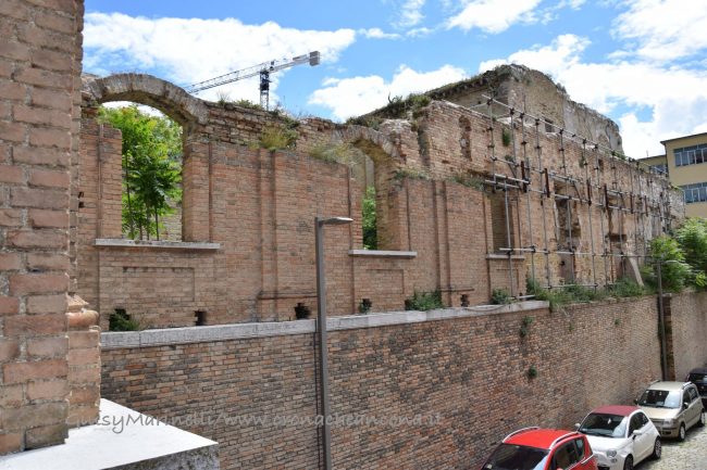 Dopo le ultime le festività pasquali la Direzione pianificazione urbanistica del Comune, che ha anche competenze di tutela ambientale, ha ingaggiato un’azienda che si occupa di riparazione e/o sostituzione di laminati in fibrocemento, entrata in azione dopo un monitoraggio dell’Agenzia regionale protezione ambientale Marche (Arpam). I rami di un grosso albero si erano staccati danneggiando la parte terminale della copertura esterna del soffitto, con frantumazione e lesioni su una grande lastra di ondulato sporgente dalla muratura, di cui alcuni frammenti erano caduti al suolo. Si è agito utilizzando una gru con cabina, sotto la guida di un ingegnere, con incapsulamento della lastra, per una costo di 12mila e 200 euro. Sia l’Arpam che l’ingegnere della ditta hanno potuto verificare che tutta la restante parte delle tettoia in fibrocemento eternit bianco è integra e in buono stato; nel frattempo tecnici del Comune hanno tagliato e rimosso altri rami pericolanti dell’albero che aveva causato il danno. Tutto il materiale evacuato è stato smaltito a norma di legge. Circa un anno fa, ad aprile, tecnici dell’azienda “Gemma” di Fano, incaricata dalla Soprintendenza, avevano recuperato e ripulito a dovere una ventina di reperti scultorei, tutti di epoca medievale e rinascimentale, da un plesso-tunnel semi ipogeo dello stesso complesso conventuale, che si affaccia in via Fanti nella zona che divide il palazzo delle scuole dal Salone del Capitolo. Quasi 20 pezzi (anche in questo caso per lo più lapidi e stemmi), trasportati lì vicino, adagiati e coperti con teloni di plastica nel cortile di Palazzo Camerata, sede dell’assessorato alla Cultura. Si spera ora che la Soprintendenza si adoperi affinché anche gli altri reperti ancora presenti nel Salone del Capitolo da ben 75 anni possano raggiungere quelli appena citati e che tutti, grazie alla disponibilità del Comune, possano trovare finalmente una collocazione espositiva adeguata.