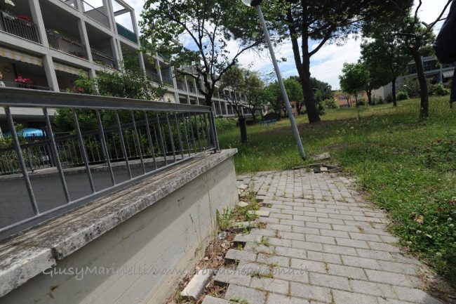 Erba incolta, mattonelle divelte, cannelle non funzionanti e persino topi morti. Ecco come si presente il parco Verde Mare, a Collemarino. E’ l’area pubblica che circonda il comprensorio di appartamenti di via Ricci. Da tempo i residenti segnalano lo stato d’incuria in cui versa il parco, ma nulla sembra essere cambiato dal punto di vista della tutela del verde pubblico. Negli ultimi giorni sono stati anche rinvenuti, a ridosso delle abitazioni, dei topi morti. Per il resto, ciò che regna è una sorta di abbandono dell’area. Molte panchine sono inglobate nell’erba incolta. Da una cannella manca l’erogatore dell’acqua. Alcuni pali della luce sono sbilenchi e parte delle mattonelle dei vialetti che conducono agli appartamenti sono divelti. Un pericolo per gli anziani e i bambini che passano di lì ogni giorno. Ci sono poi i muri del parco, con i ferri a vista, anche a ridosso dell’asfalto.