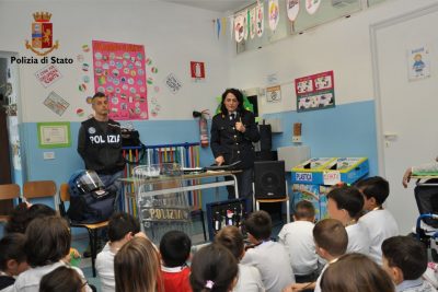 I bambini sono stati messi in guardia anche tra i vicoli del genere per cyberbullismo una sorta di bullismo 2.0 tipico dei minorenni contro il quale oggi la legge offre nuovi ed efficaci strumenti di contrasto a partire dai progetti educativi e rieducativi dedicati all’uso della rete alle sanzioni disciplinari in ambito scolastico per il bullo, fino alla ammonimento del Questore che la vittima di continui e ripetuti insulti, minacce, derisioni e vessazioni in rete può richiedere contro il suo aguzzino ultra-quattordicenne presentando richiesta in un ufficio di polizia. La Polizia di Stato continuerà a promuovere questi incontri che si configurano come esperienze importanti nel percorso di crescita dei piccoli alunni, cittadini del futuro, chiamati a custodire gelosamente i valori fondamentali della legalità e del rispetto degli altri compresi dalla costituzione.