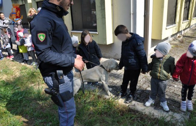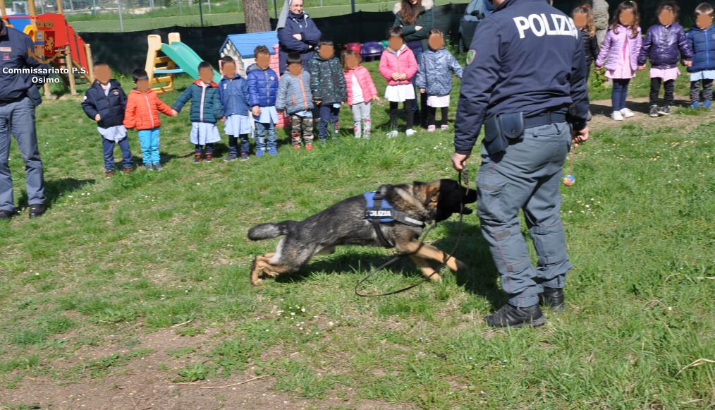 La ‘tappa’ di Padiglione è stata solo l’ultima di una serie di incontri degli uomini e delle donne nel Commissariato della Polizia di Stato che durante l’intero anno scolastico passando per le scuole di Passatempo San Paterniano e del centro storico hanno illustrato ai piccoli il lavoro del poliziotto sempre dalla parte dei più deboli ed indifesi. Gli incontri ci sono svolti sia presso le scuole che in Commissariato dove piccoli alunni sono stati gli ospiti d’onore ed hanno potuto avvicinarsi a concerti importanti come quello della legalità, divertendosi. Più gettonato è stato senz’altro l’incontro con ‘Gigiotto il cane poliziotto’ il fantasioso protagonista della loro quotidianità che vigila sul rispetto delle regole. A scuola il cane si è materializzato sotto i loro piccoli occhi attenti nei tanti stupendi esemplari di cane poliziotto come Edox un cane lupo antidroga dal fiuto acutissimo, Rick e Stella, cani antisommossa particolarmente obbedienti, Byron docilissimo labrador antiesplosivo e Mya cucciolo di Labrador che si sta addestrando per diventare un super cane antiesplosivo I bimbi sono rimasti entusiasti nella performance dei cani, abilmente guidati dai loro conduttori, tutti poliziotti dell’Unità cinofila della Questura di Ancona. Molto apprezzata dai piccoli è stata anche l’esperienza fatta con la polizia scientifica che grazie alle sue tecniche di indagine sempre più all’avanguardia, ha consentito l’identificazione un tempo impensabili, di autori di crimini gravi ed efferati anche molto risalenti nel tempo.