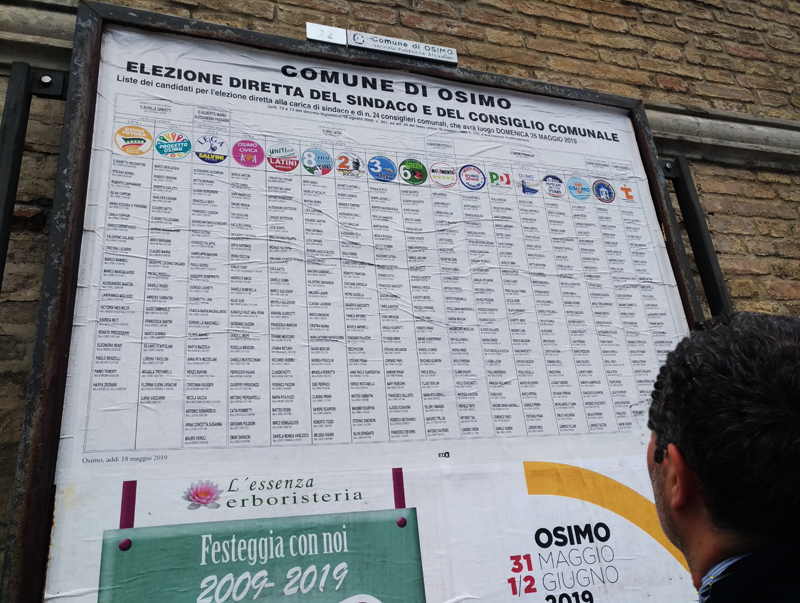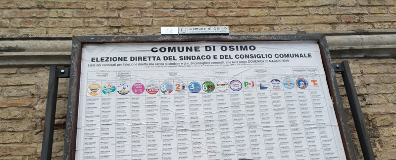 LE ELEZIONI DEL 2014 – Nel 2014 correvano in cinque alla carica di primo cittadino (nel 2009 addirittura in nove) ed erano 29.705 gli elettori osimani (15.250 donne e 14.455 uomini) e 29.211 elettori (15.044 donne e 14.167 uomini) gli aventi diritto a votare per le Europee. Al primo turno delle Amministrative 2014 aveva deposto la scheda nell’urna il 68,21% degli aventi diritto, al secondo turno il 51,32%. Sono arrivati al ballottaggio Simone Pugnaloni (Pd) e Dino Latini (Liste civiche) con un vantaggio di quasi 1200 preferenze. Ma l’apertura delle urne sha riservato sorprese l’8 Giugno 2014: Pugnaloni ha superato di soli 6 voti, l’avversario che lo precedeva al primo turno, vicendo per 7.435 voti (50,02%) contro i 7429 di Latini (49.98%). Sei voti che hanno fatto la differenza e che erano scesi a 3 dopo un contenzioso legale chiuso un anno e mezzo dopo, a gennaio nel 2016 con la sentenza definitiva del Consiglio di Stato, ma erano state 38 le schede riverificate in prefettura e poi poste all’attenzione del Tar Marche.