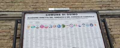 I SEGGI – Sono 33 in tutti i seggi osimani, distribuiti su 12 sedi sul territorio comunale, 3 dei quale ‘speciali’ e impegnati a raccogliere le schede all’ospedale e nelle case di riposo Buttari, Recanatesi e Bambozzi. Le sezioni più ‘popolose’ sono state accorpate alla Primaria ‘Marta Russo’ di via Aldo Moro (seggi n. 22, 23, 24, 25, 26, 27, 32 e 33), seguono quelle di Osimo Stazione (sezioni n. 11, 12, 13, 29), quelle insediate nella scuola della Fornace Fagioli (sezioni n, 19, 20 e 21), in centro storico alla Primaria ‘Bruno da Osimo’ (sezioni 1, 2 e 3), a di San Biagio (sezioni n.9, 10, 31), Primaria di Campocavallo (seggi n. 16 e 28), elementare di Borgo San Giacomo (seggi n.7 e 8), Primaria di Passatempo (17 e 18), asilo di San Sabino (14 e 30), Primaria di Casenuove (sezioni 4 e 5). Un solo seggio invece è stato sistemato alla Primaria di Padiglione (il n. 15) e alla Materna di San Paterniano (il n, 6). Domani si voterà dalle 7 alle 23. alla chiusura delle urne inizierà lo spoglio delle schede per le Europee. Lo scrutinio per le Comunali partirà invece dalle 14 di lunedì 27 Maggio.