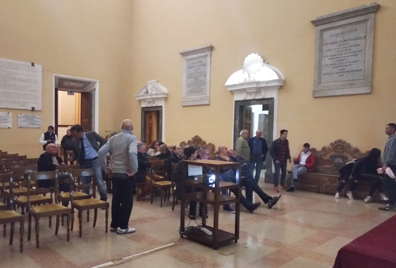 il pubblico nella Sala Maggiore del Comune riunito ieri davanti al maxi schermo con i dati dello scrutinio