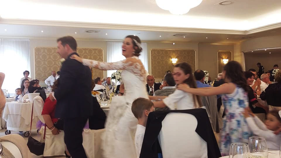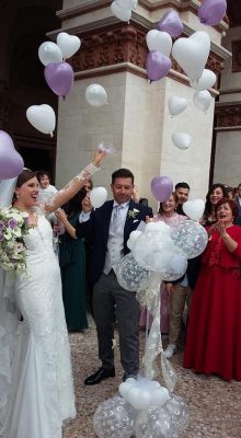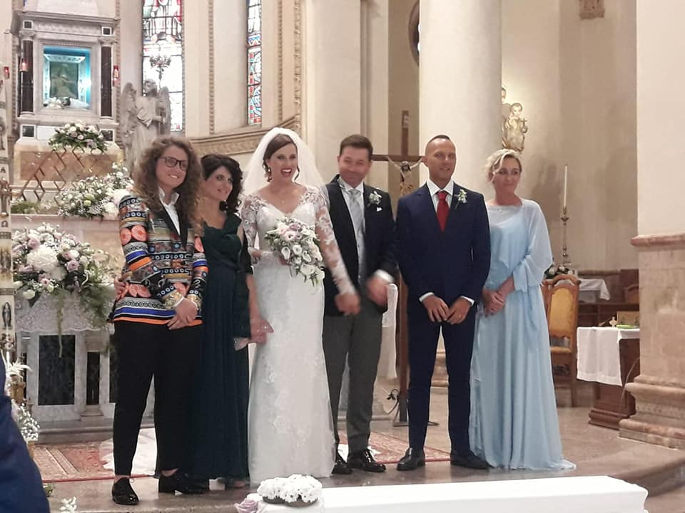 Testimoni della sposa sono state la sorella Alessandra e la cugina Laura, i compari d’anello scelti dallo sposo, invece, erano la cugina Michela e l’amico di una vita Roberto. Seguivano poi il corteo nuziale due simpatiche damigelle con il tradizionale cesto di fiori (le due Elena), mentre il piccolo Andrea, come paggetto ha avuto il compito fondamentale di consegnare le fedi. Una giornata indimenticabile per la coppia che neanche la pioggia torrenziale è riuscita a scalfire nell’organizzazione. La gioia di questo giorno indimenticabile è stata condivisa a pranzo con tanti amici tra i tavoli dell’Hotel Anton di Recanati, tra piatti gustosi, tanta allegria e balli di gruppo. Con un unico fuori programma: in serata al rientro a casa i neo coniugi hanno trovato la porta della loro abitazione ‘sbarrata’ per uno scherzo tecnologico degli amici, e fino alle 2 di notte sono stati costretti a ingegnarsi per riaprirla. Avranno, però, tempo per riposarsi in luna di miele, nella vacanza già programmata in Sardegna.