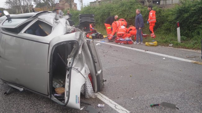 Schianto sull’Adriatica, 50enne trasportato in codice rosso a Torrette. Era a bordo della sua auto quando è stato tamponato da un’altra vettura: il veicolo si è ribaltato ed è stato sbalzato fuori dall’abitacolo. Sul posto dell’incidente, avvenuto intorno alle 10,30 lungo la statale Adriatica di fronte al ristorante “Capriccio”, tra Montemarciano e Falconara, il 118, l’eliambulanza Icaro01, la Polstrada per i rilievi del caso, la Polizia locale di Falconara e i vigili del fuoco per mettere in sicurezza la zona dello schianto. L’incidente, forse causato dall’asfalto reso viscido dalla pioggia battente, ha visto coinvolti tre veicoli. Secondo una prima ricostruzione il 50enne era alla guida di una Fiat 600. Proveniente da Falconara, stava svoltando a sinistra per immettersi nel piazzale del ristorante quando è stato tamponato da un’Alfa 187 condotta da un ragazzo di Falconara. Violento l’impatto, la 600 si è ribaltata e il 50enne è stato sbalzato fuori dall’abitacolo finendo sull’asfalto. Coinvolta anche una terza vettura, una Fiat Panda proveniente da Montemarciano e condotta da un 68enne che si è scontrata con uno dei veicoli. Il 50enne è stato subito soccorso e rianimato sul posto, le sue condizioni sono molto gravi. E’ stato trasferito a Torrette con l’eliambulanza. Nessuna grave conseguenze per gli altri due automobilisti. Il tratto di strada dal semaforo del Mandracchio al punto dell’incidente è rimasto chiuso per circa due ore, in modo da permettere i soccorsi e i rilievi del caso.
