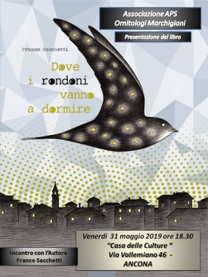 L’Associazione a carattere regionale Aps “Ornitologi Marchigiani“, che si occupa di avifauna a livello tecnico, ha organizzato ad Ancona, per domani, venerdì 31 maggio, l’iniziativa “Un pomeriggio alla scoperta dei rondoni” . L’iniziativa consisterà in un’escursione urbana alla ricerca delle due specie di rondoni che nidificano nella città di Ancona, Rondone comune (Apus apus) e Rondone pallido (Apus pallidus) con ritrovo alle ore 15 presso Piazza del Senato-Ancona, mentre alle ore 18.30 presso la “Casa delle Culture”, sita ad Ancona, Via Vallemiano, 46, ci sarà la presentazione del libro “Dove i rondoni vanno a dormire”, una Graphic novel dedicata a questa specie e al loro rapporto con l’uomo. All’incontro saranno presenti Franco Sacchetti (Autore del libro) e Mauro Ferri (Monumenti Vivi-Festival dei Rondoni). Nell’occasione, il Dr. Ferri porterà la sua personale esperienza riguardo alcuni interventi di ristrutturazione degli edifici tesi a coniugare il mantenimento del valore storico-architettonico con la tutela della biodiversità ivi nidificante. Al termine dell’iniziativa, vi sarà una degustazione di vini locali a cura dell’associazione stessa. Tutti possono partecipare.