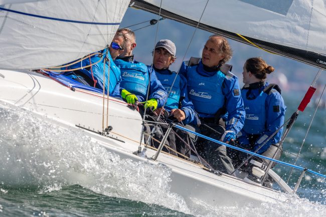 E’ di nuovo podio, dopo l’evento di Ancona chiuso al secondo posto, per Alberto Rossi e la sua Enfant Terrible-Adria Ferries che, a Malcesine, conquista la medaglia di bronzo nella terza frazione del circuito di regate J/70 Cup. A Malcesine, i 66 equipaggi iscritti sono stati protagonisti di un weekend di regate combattute, caratterizzate da condizioni meteo estremamente variabili e in cui continui stravolgimenti nella classifica generale sono stati all’ordine del giorno.