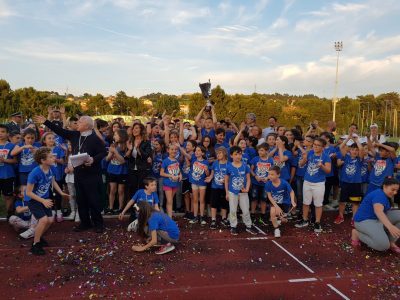 Lo stadio Roccheggiani si è colorato di blu per l’edizione 2019 delle Miniolimpiadi. Anche quest’anno, come nel 2017, il ‘Palio’ è andato infatti a Palombina Vecchia-Barcaglione, che concorreva appunto con il colore blu. A consegnare il Trofeo dei Quartieri è stata il sindaco Stefania Signorini. Il Trofeo tecnico intitolato ad Adelio Pistelli, consegnato dalla figlia Roberta, è stato invece assegnato al Centro (colore rosso), che ha totalizzato 49 punti, seguito da Palombina Vecchia-Barcaglione con 44, da Castelferretti (colore verde) con 43 e dal Quartiere Stadio-Falconara Alta-Villanova-Fiumesino-Poiole (colore arancione) con 39. L’istituto comprensivo Raffaello Sanzio ha infine conquistato il Trofeo di istituto: il 64% degli iscritti ai vari plessi ha partecipato a gare e tornei. A consegnare i trofei, insieme al sindaco e a Roberta Pistelli, sono stati Fabio Sturani della Regione Marche, gli assessori falconaresi Marco Giacanella e Clemente Rossi, Stefano Donzelli, direttore della Bcc (tra gli sponsor dell’evento), il comandante dei carabinieri della Tenenza di Falconara Michele Ognissanti, il vicecomandante della Compagnia falconarese della Guardia di Finanza Francesco Cavuoto e l’ideatore delle Miniolimpiadi Fernando Montalbini. A precedere le premiazioni, l’annuncio di una nuova manifestazione pubblica contro le barriere antirumore di Rfi: Paolo Baldelli, segretario del Comitato No al muro, sì al mare di Falconara, affiancato dal sindaco Signorini ha invitato i tanti presenti a partecipare a una catena umana di protesta che si svolgerà sulla spiaggia domenica 23 giugno a partire dalle 11, in collaborazione con i bagnini falconaresi.