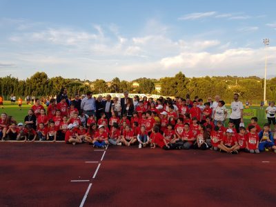 Lo stadio Roccheggiani si è colorato di blu per l’edizione 2019 delle Miniolimpiadi. Anche quest’anno, come nel 2017, il ‘Palio’ è andato infatti a Palombina Vecchia-Barcaglione, che concorreva appunto con il colore blu. A consegnare il Trofeo dei Quartieri è stata il sindaco Stefania Signorini. Il Trofeo tecnico intitolato ad Adelio Pistelli, consegnato dalla figlia Roberta, è stato invece assegnato al Centro (colore rosso), che ha totalizzato 49 punti, seguito da Palombina Vecchia-Barcaglione con 44, da Castelferretti (colore verde) con 43 e dal Quartiere Stadio-Falconara Alta-Villanova-Fiumesino-Poiole (colore arancione) con 39. L’istituto comprensivo Raffaello Sanzio ha infine conquistato il Trofeo di istituto: il 64% degli iscritti ai vari plessi ha partecipato a gare e tornei. A consegnare i trofei, insieme al sindaco e a Roberta Pistelli, sono stati Fabio Sturani della Regione Marche, gli assessori falconaresi Marco Giacanella e Clemente Rossi, Stefano Donzelli, direttore della Bcc (tra gli sponsor dell’evento), il comandante dei carabinieri della Tenenza di Falconara Michele Ognissanti, il vicecomandante della Compagnia falconarese della Guardia di Finanza Francesco Cavuoto e l’ideatore delle Miniolimpiadi Fernando Montalbini. A precedere le premiazioni, l’annuncio di una nuova manifestazione pubblica contro le barriere antirumore di Rfi: Paolo Baldelli, segretario del Comitato No al muro, sì al mare di Falconara, affiancato dal sindaco Signorini ha invitato i tanti presenti a partecipare a una catena umana di protesta che si svolgerà sulla spiaggia domenica 23 giugno a partire dalle 11, in collaborazione con i bagnini falconaresi.