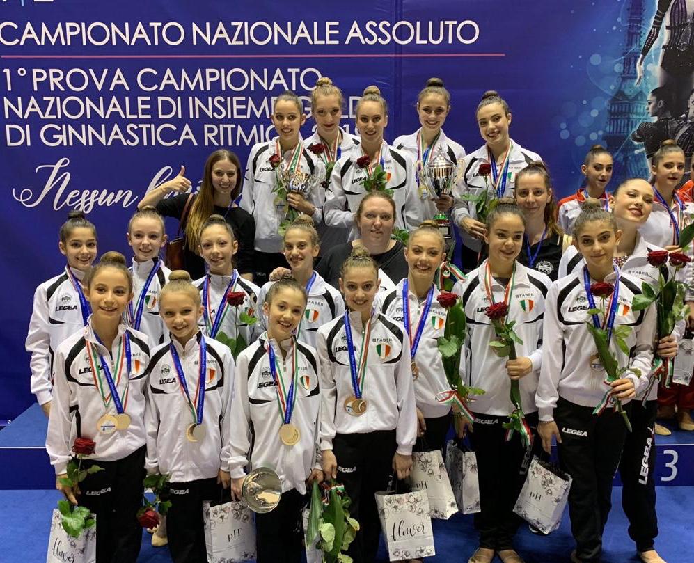 Chiudono la gara di sabato le più grandi, la squadra Open: Nina Corradini, Roberta Giardinieri, Elisa Todini, Talisa Torretti e Giulia Zandri, che accedono in finale con l’ottavo punteggio, dieci i posti disponibili. E’ la giornata di domenica, delle finali, che dimostra il carattere e la tenacia delle nostre ragazze, la squadra giovanile nonostante una gara serratissima riescono a strappare il Bronzo Italiano, le più piccole, le allieve con una grande rimonta dal settimo posto riescono a vincere l’Argento Italiano e per finire la squadra delle più grandi, le Open risalgono dall’ottavo posto fino alla piazza più importante. E’ oro, sono Campionesse Italiane.
