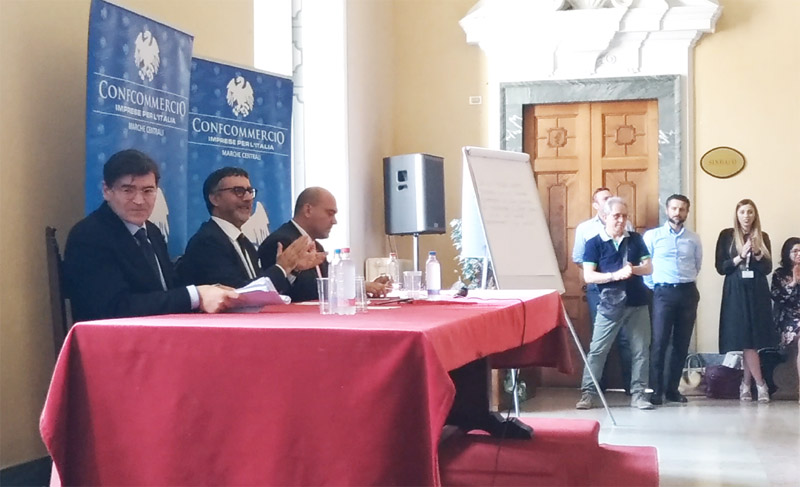 Domenica il ballottaggio che decreterà il nuovo sindaco di Osimo. Oggi per i due candidati sindaco, Dino Latini (Liste Civiche, al 34,95% del consenso al primo turno) e Simone Pugnaloni (Pd-centrosinistra al 28,74%) è stata una giornata intesa. Il pomeriggio è iniziato con l’ultimo faccia a faccia in vista del voto, moderato dal direttore generale di Confcommercio Marche Centrali, Massimiliano Polacco, che ha posto ai due sfidanti 7 domande, filtrate e scaturite da un confronto attento con la categoria. In un clima sereno, nella Sala Maggiore del Comune di Osimo si è parlato di viabilità, valorizzazione e decoro del centro urbano, di pressione fiscale, sicurezza, parcheggi, cultura e turismo per far vincere ad una Osimo proiettata avanti di 5 anni le sfide del futuro. Ecco che cosa hanno risposto i due avversari politici.