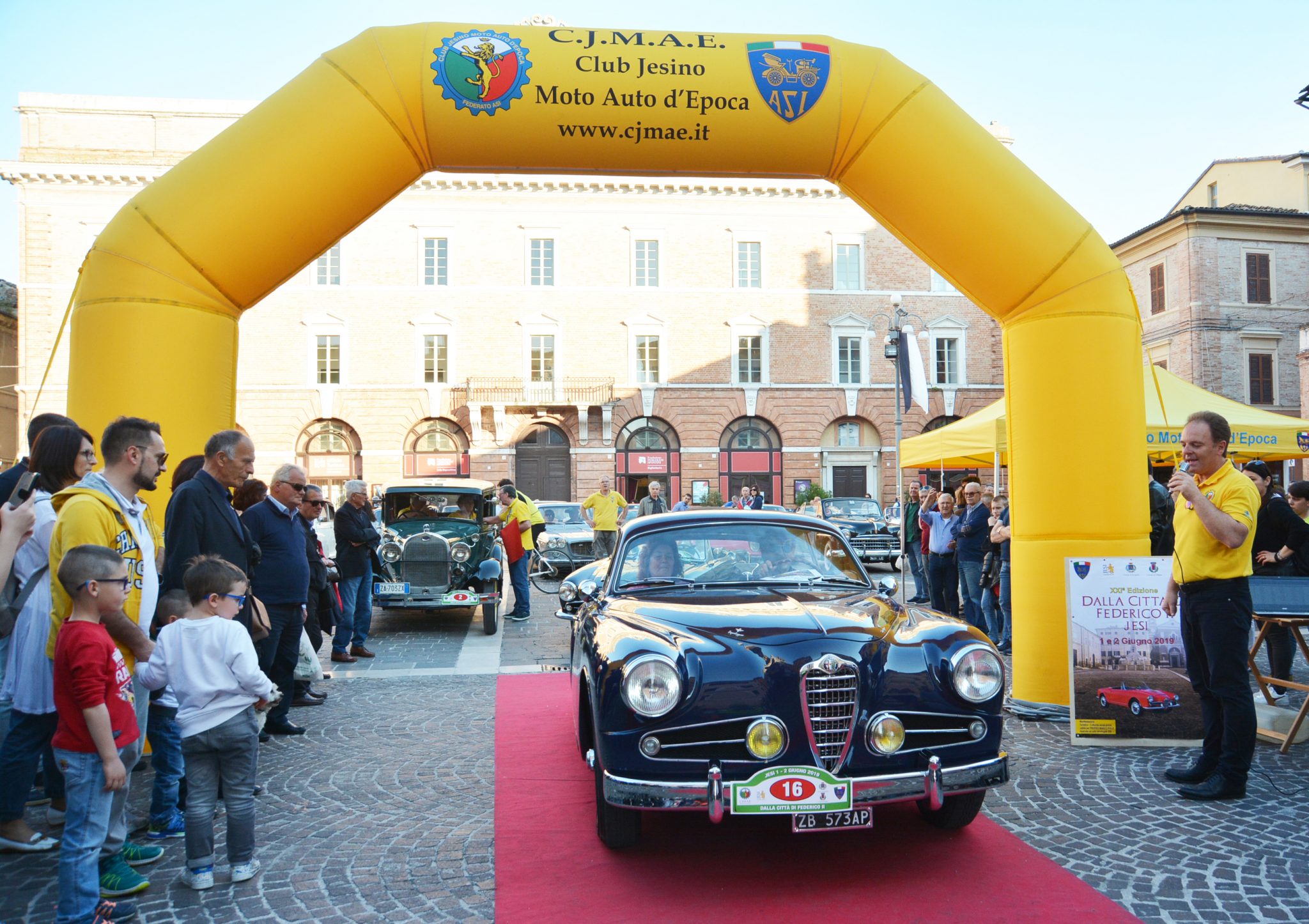 Questo importante evento per il Club Cjmae di Jesi, è oramai un appuntamento annuale molto  atteso per tutti gli amanti ed appassionati del settore motoristico storico italiano, che ha  l’intento di promuovere la cultura dei veicoli storici e al contempo associarvi insieme iniziative  turistico culturali del nostro territorio, offrendo nuova conoscenza di luoghi ed itinerari da scoprire, come infatti è stato con la visita all’Antica Cantina di S. Amico di Morro d’Alba, la visita del Centro  storico di Jesi e la possibilità di far godere a tutta la popolazione presente la nostra Piazza della  Repubblica, in concomitanza della mostra statica delle auto storiche.  Ulteriore elemento qualitativo che ha contraddistinto positivamente l’evento motoristico, è  stata la sfilata e presentazione una ad una delle auto storiche da parte del Presidente del  Cjmae Luciano Trozzi, in presenza di moltissimi cittadini che erano appositamente pervenuti nel  pomeriggio di Sabato 1 Giugno presso Piazza della Repubblica. Questo spettacolo offerto alla  popolazione è stato molto gradito ed applaudito.