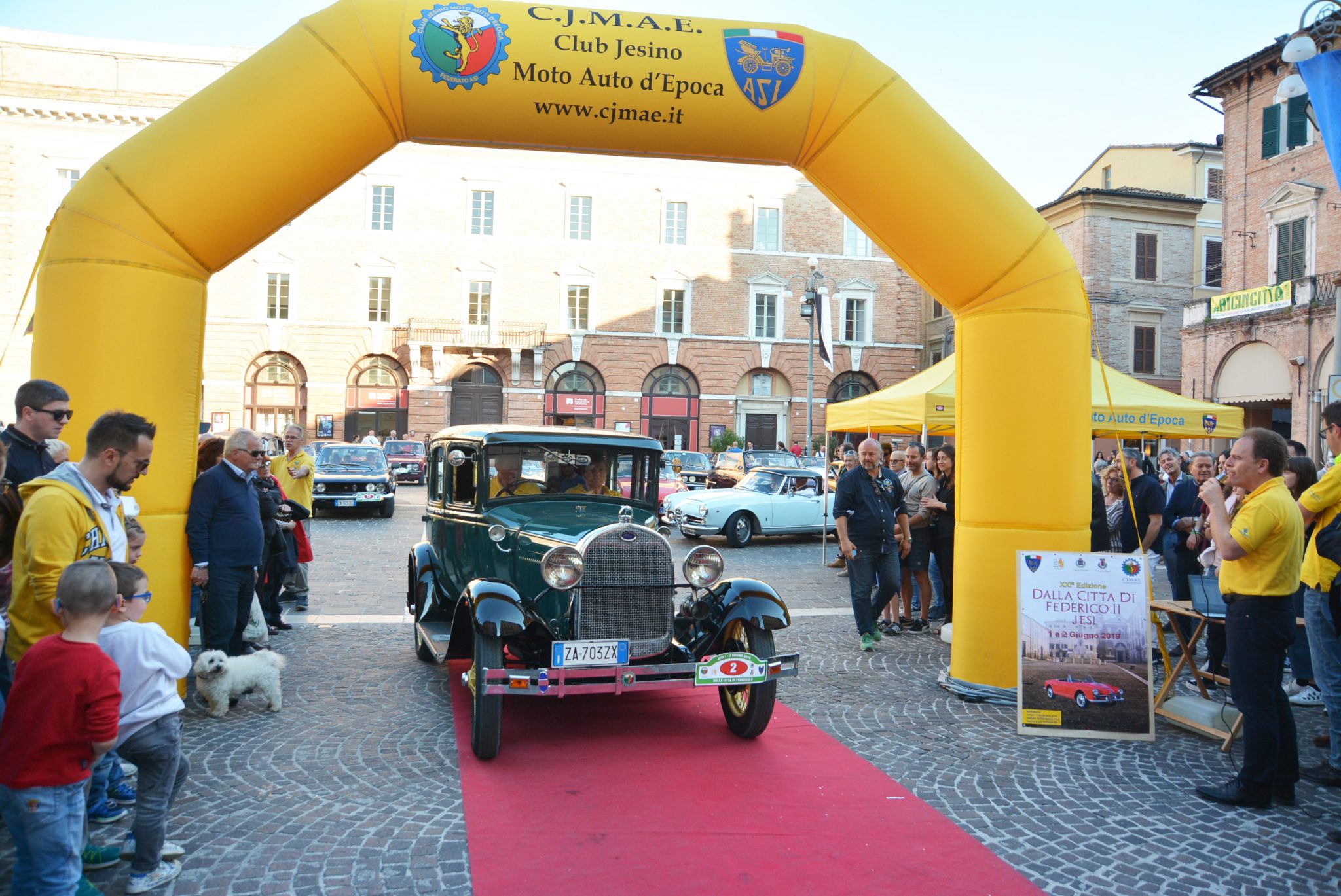 Il Club Jesino Moto e Auto d’Epoca – CJMAE, Club Federato ASI , torna ad offrire alla Città di  Jesi e a tutta la Vallesina una bellissima manifestazione di auto storiche, denominata “ Dalla Città  di Federico II° “ edizione 2019 , valevole per il Trofeo Nazionale “ Marco Polo “. La manifestazione rivolta alle auto omologate ASI ( Automotoclub Storico Italiano ), svoltasi su due  giorni ha visto un pregevolissimo livello qualitativo, ed un’ottima presenza di modelli auto molto  ricercati ed accattivanti. Alcuni di questi sono stati una Ford A 1929, Ferrari Dino 246 GT 1972,  Alfa Romeo 1900 C Super Sprint 1955, Alfa Romeo Giulia Spider 1963, Alfa Romeo Giulia SS  1964, Austin Healey 100/6 del 1957 quest’ultima proveniente direttamente dalla Slovenia, una  Jaguar E Type Spider 1963, Ferrari 208 GT4 Dino 1976, e tantissimi altri modelli, provenienti da  molteplici regioni d’Italia.