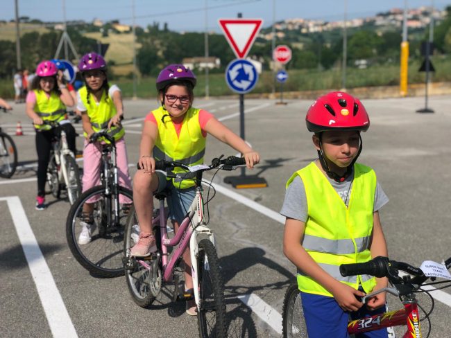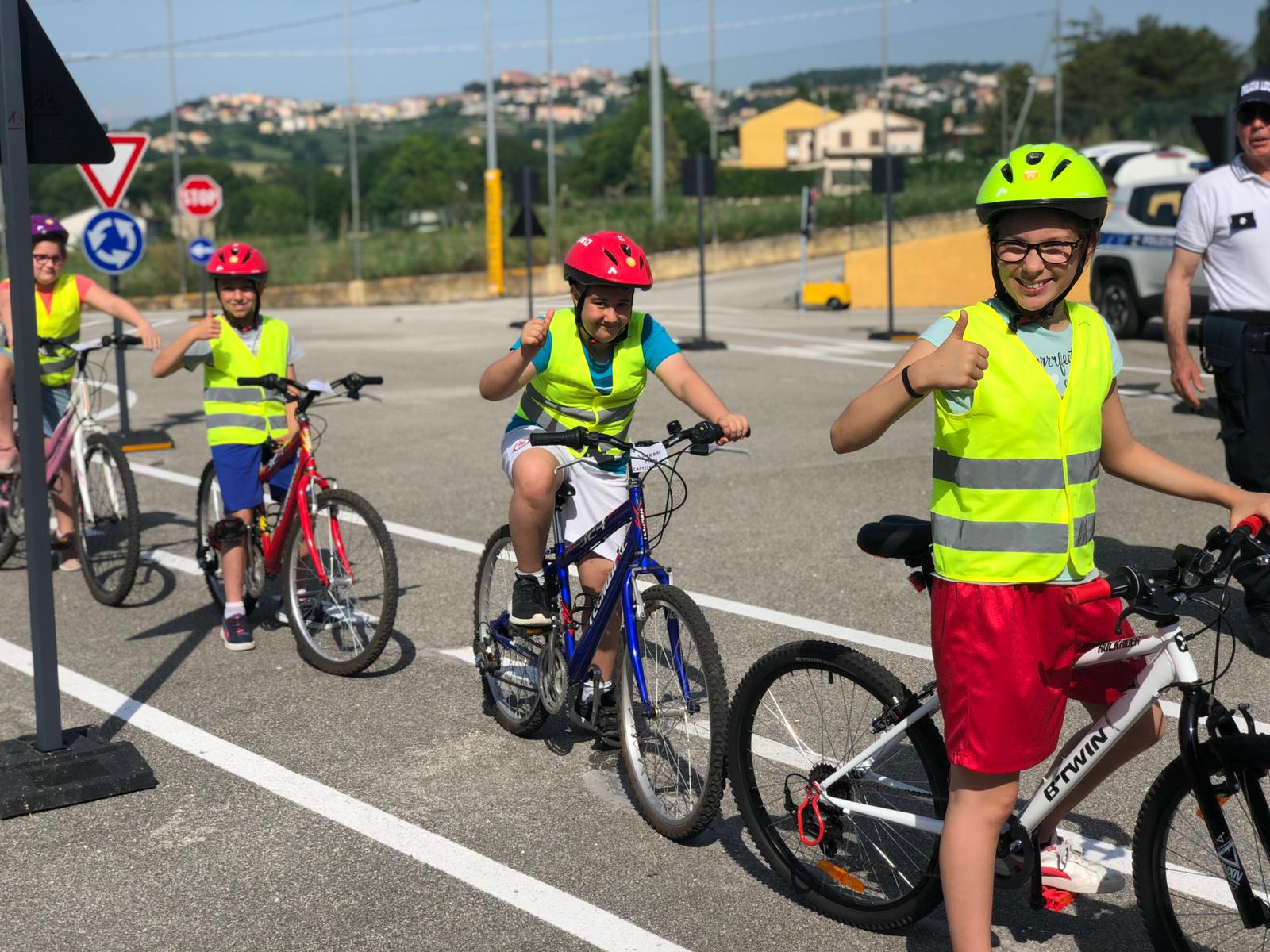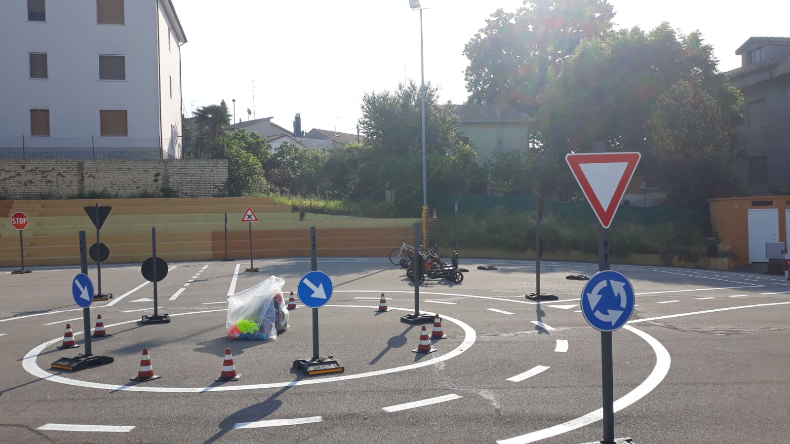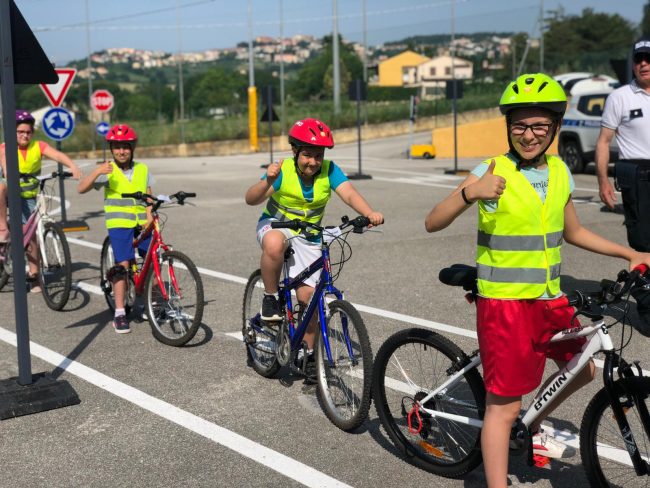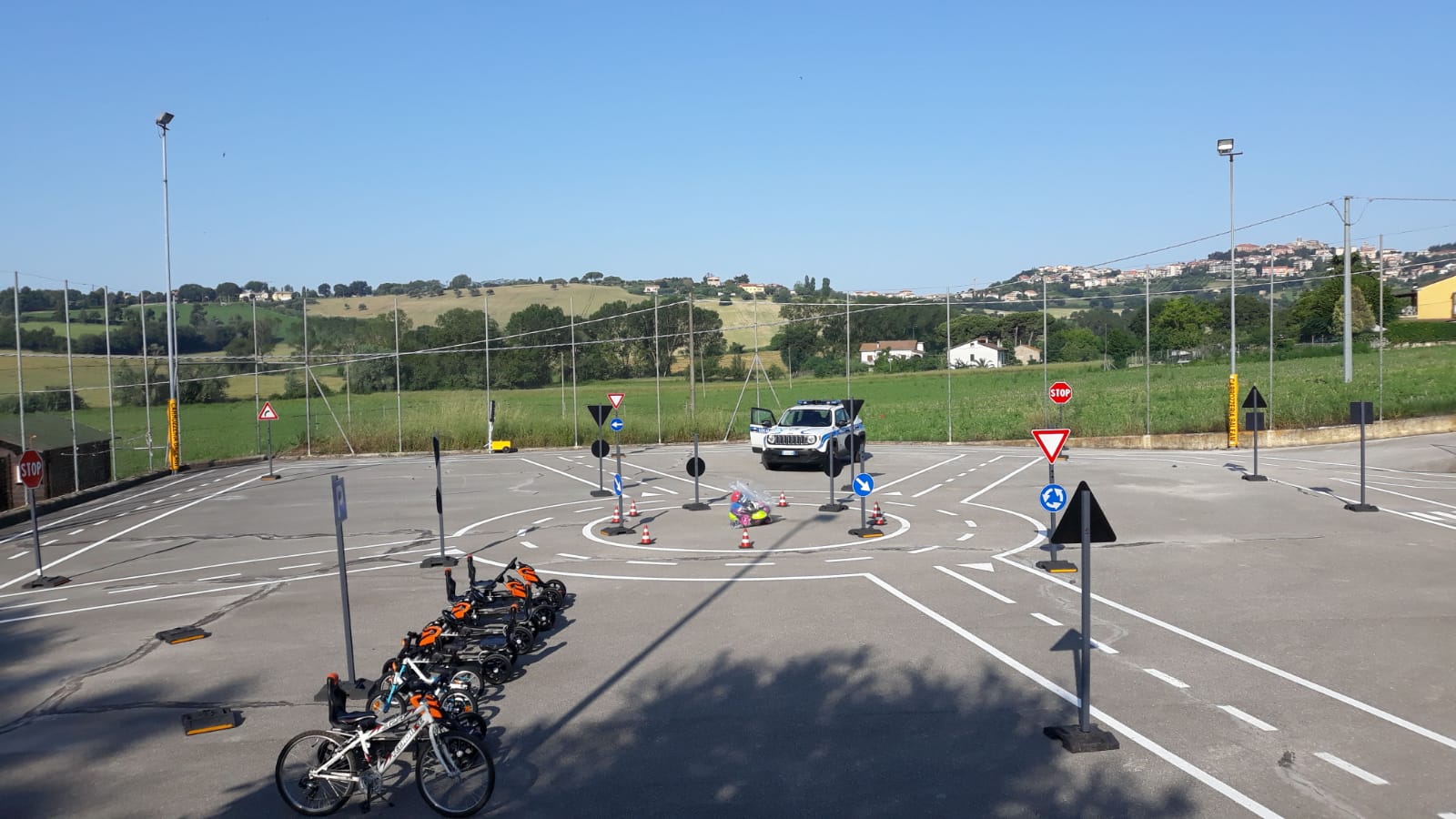 L’area didattica è stata intitolata a ‘Michele Scarponi’ il campione del ciclismo, morto in una tragico incidente stradale ad aprile del 2017 mentre si allenava in bicicletta e in se’ racchiude un messaggio positivo: tutti gli utenti della strada meritano lo stesso rispetto. Un principio basilare che almeno 10 agenti del comandante Franco Gerboni, coordinati dal referente del progetto, il tenente Paolo Tondini, insieme ai tecnici istruttori della Superbike di Rossano Mazzieri, alternandosi in cattedra hanno trasmesso agli studenti, oltre a spiegare la differenza tra i segnali, cartelli indicatori e le regole del Codice della Strada. Domani, 8 Giugno, sarà l’ultima giornata di esperimenti sulla pista didattica con le tre IV classi dell’I.C.‘Mazzini’. Archiviata questa prima esperienza si pensa già al futuro: nel prossimo anno scolastico, se le condizioni lo permetteranno, saranno programmate lezioni più complesse ed articolate da estendere anche agli studenti delle scuole medie della città, per farli crescere in consapevolezza e responsabilità in vista dell’esame per il rilascio del patentino per la guida degli scooter di piccola cilindrata.