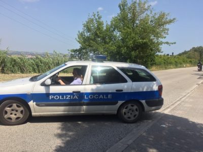 La Polizia locale di Camerata Picena mentre lascia il luogo del ritrovamento