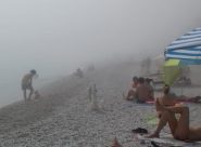 Tutti al mare. Anche con la nebbia. Una foschia fitta fin dalle prime ore di questa mattina è calata su tutta la baia di Portonovo, in particolare nel tratto della Torre de Bosis. Nonostante la nebbia, gli amanti del mare non hanno resistito al richiamo della spiaggia.