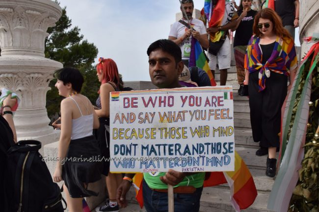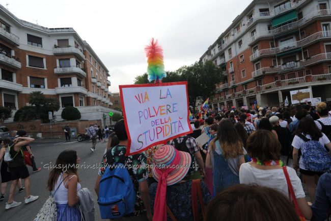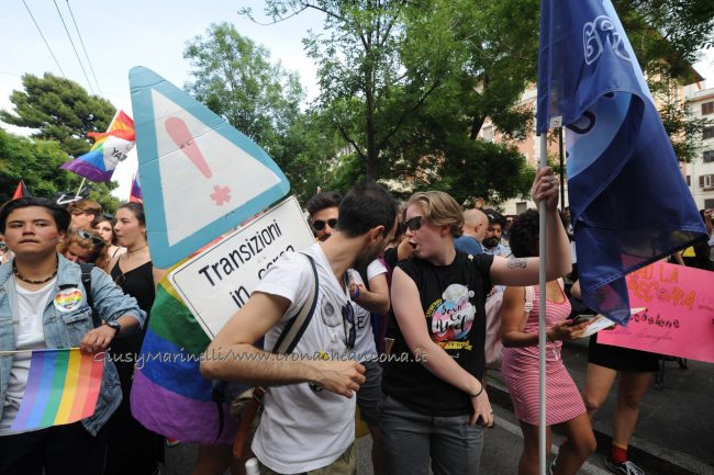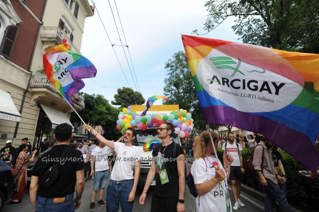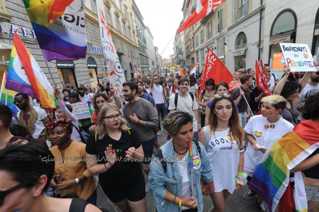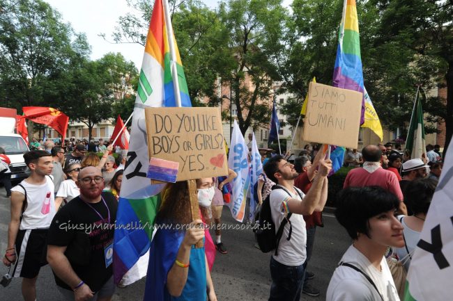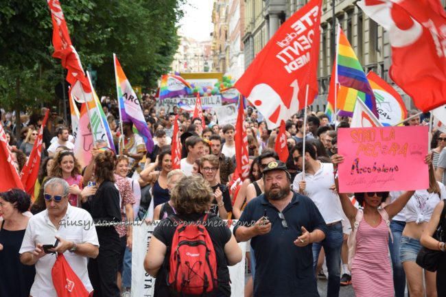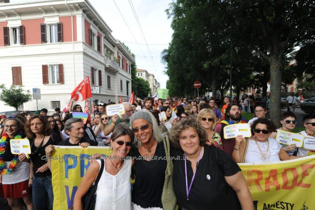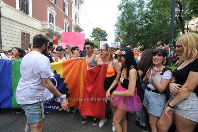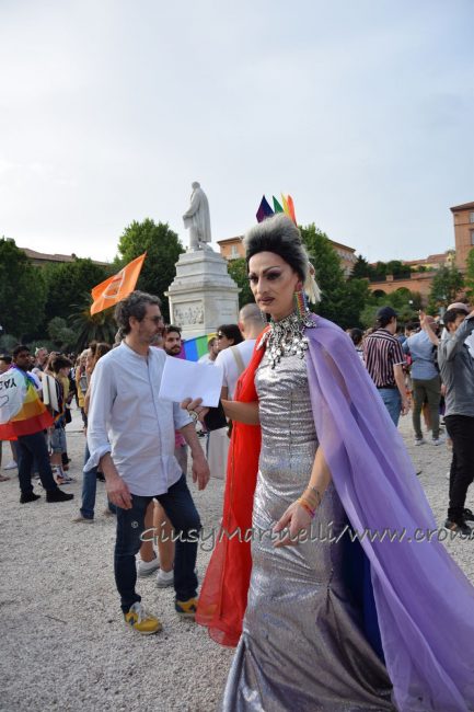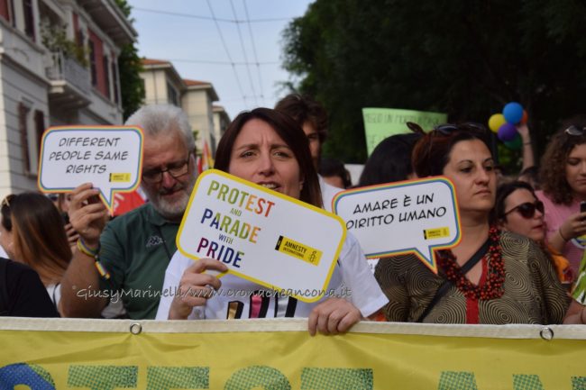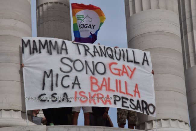 L’onda arcobaleno travolge le vie della città in un turbinio di musica e colori. Il primo Pride marchigiano ha visto la partecipazione di migliaia di persone (5mila secondo gli organizzatori, poco meno di 2mila secondo le forze dell’ordine), che hanno sfilato per le vie del centro a tempo di musica scandita dagli altoparlanti dei camioncini della Cgil e di Arcigay. Partito dal monumento del Passetto, il corteo si è snodato lungo viale della Vittoria e corso Stamira, per poi risalire corso Garibaldi e fermarsi in piazza Cavour. Anticipata questa mattina dalla conferenza alla Mole con l’ex ministro Valeria Fedeli e il presidente nazionale Arcigay Luciano Lopopolo, la sfilata ha visto la presenza, tra gli altri, del garante dei diritti Andrea Nobili, dell’assessore comunale alla Cultura, Paolo Marasca, in veste ufficiale, del consigliere Francesco Rubini (Aic) e delle maggiori sigle sindacali. Madrina dell’evento Antonella Bellutti, per due volte campionessa olimpica di ciclismo: «sono altoatesina di nascita e trentina di adozione, ma sono qui oggi perché mi fa molto piacere prendere parte a questa esperienza per i diritti di tutti, contro le discriminazioni. Gli organizzatori mi hanno chiesto di partecipare ed ho subito accettato». Tra gli slogan scanditi durante il corteo, «Diritti noi vogliamo, indietro non torniamo» e «mamma tranquilla, sono gay mica balilla». Dal palco improvvisato in piazza Cavour, Franco Grillini, simbolo del movimento Lgbt italiano, ha lanciato una stoccata al ministro dell’Interno Matteo Salvini, pur senza nominarlo direttamente: «dico ai politici che esibiscono simboli religiosi come clave, che noi invece esibiamo simboli di pace. Smettetela di presentare la diversità come una minaccia».