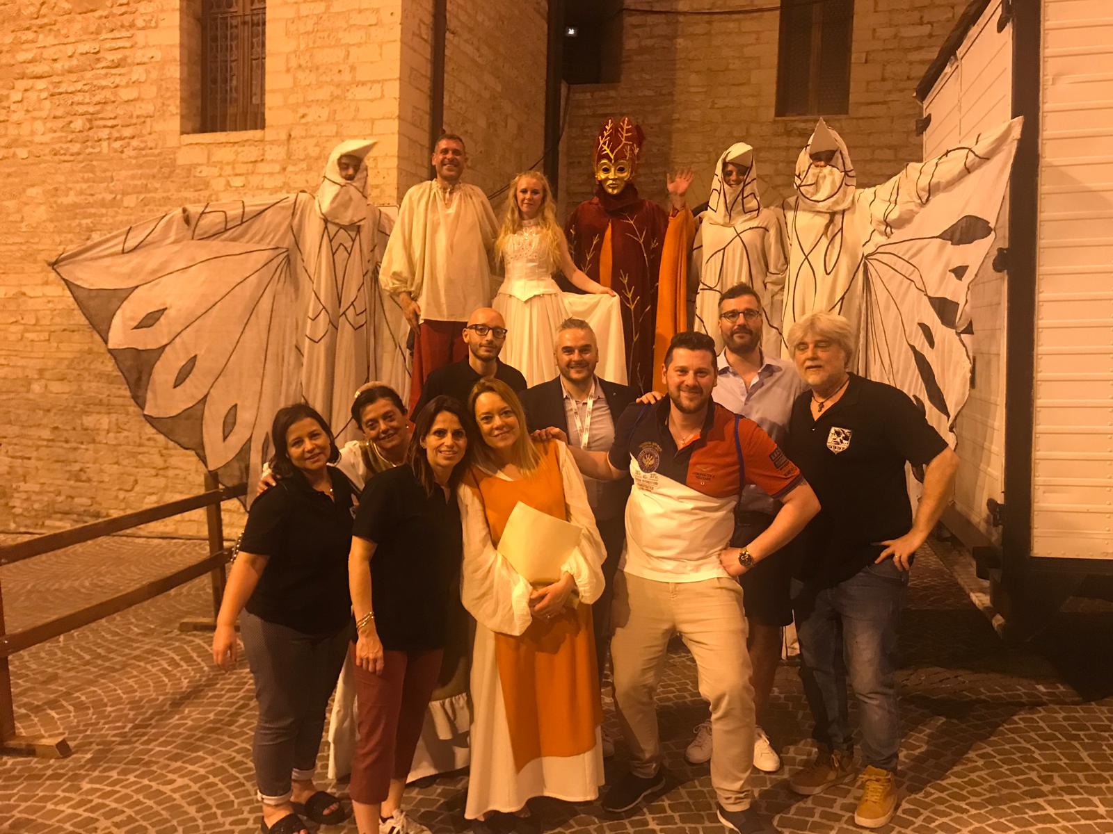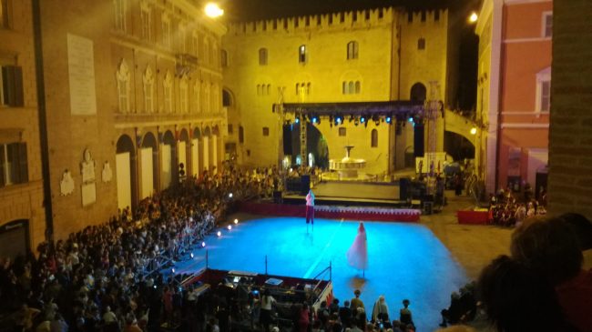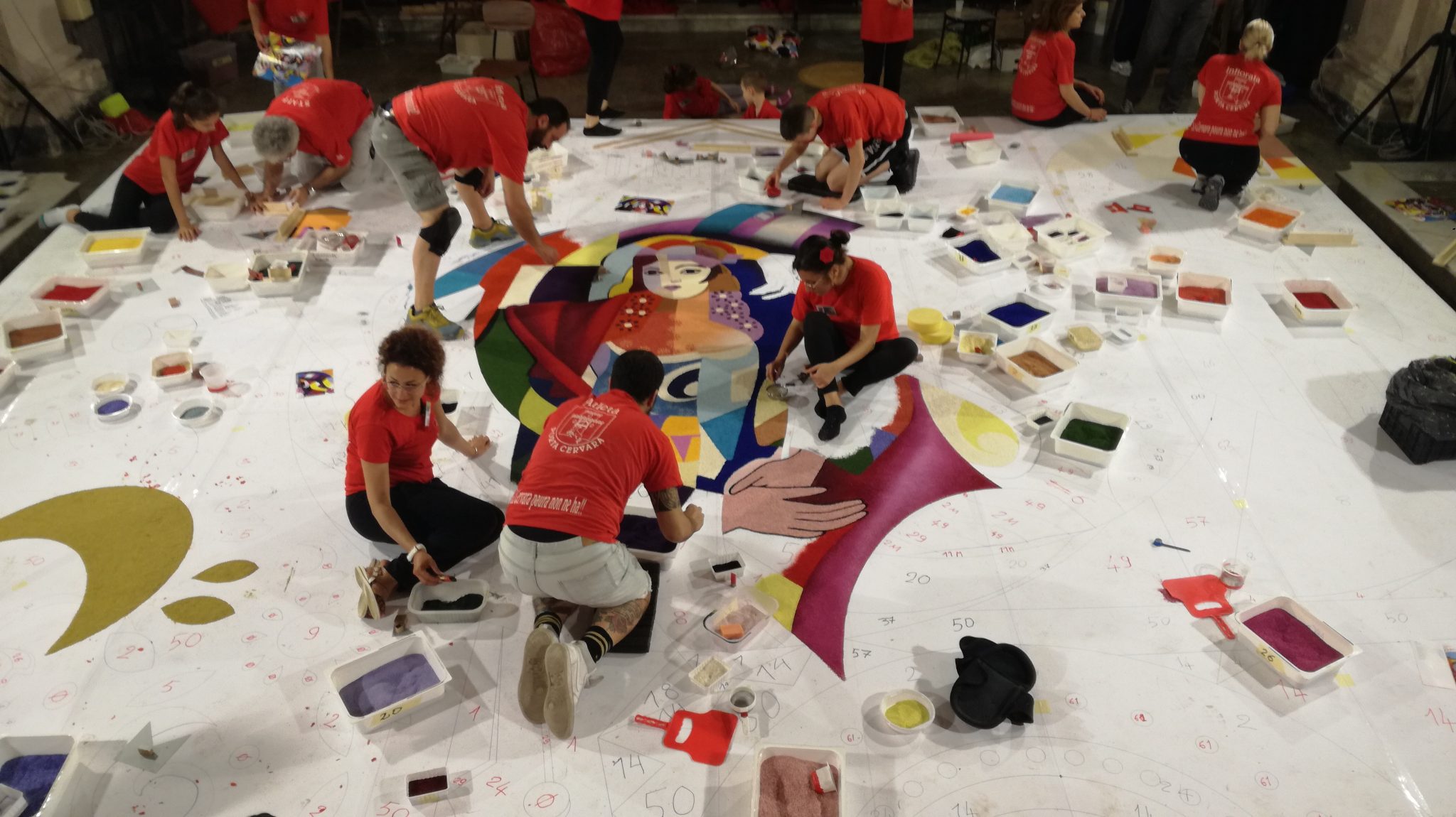 Prosegue, con successo, il lavoro dei maestri infioratori del Palio di San Giovanni Battista di Fabriano che, da ieri, lunedì 10 giugno, stanno realizzando veri e propri capolavori coi fiori (per circa 42 mq). Dovranno essere ultimate entro giovedì alle ore 17, ma già oggi è possibile vedere il lavoro degli infioratori. Ieri, intanto, l’Università Popolare di Fabriano ha inaugurato, presso il Chiostro della Cattedrale San Venanzio, l’esposizione artistica “L’acqua di San Giovanni si colora”, acquarello, ceramica, fotografia: una triade di creatività. Si potrà ammirare, fino al 24 giugno, dal lunedì al venerdì, dalle 17,30 alle 19,30 e il sabato e la domenica, dalle 10,30 alle 12,30 e dalle 17,30 alle 19,30. In tanti, ieri sera, hanno preso parte, in piazza del Comune, alla serata inaugurale del Palio di San Giovanni Battista con la cerimonia di Nomina e Giuramento del Podestà l’innalzamento dei Gonfaloni e Spettacolo “Alchimie di fuoco” a cura di Piccolo Nuovo Teatro.