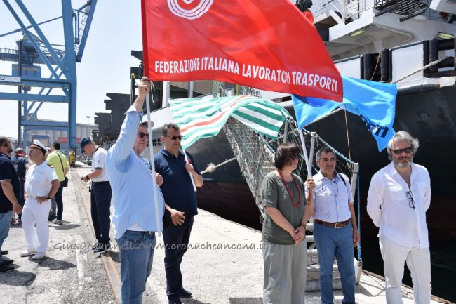 Il porto di Ancona piange Luca Rizzeri, il giovane papà che ieri ha perso la vita, colpito da una cima della nave BF Philipp che non gli ha lasciato scampo. Oggi è stata la giornata del dolore e della rabbia per una morte sul lavoro che i sindacati hanno definito «una tragedia annunciata». Alle 12, nella banchina 23 – dove è avvenuto l’incidente e dove tuttora è ormeggiata l’imbarcazione Bf Philipp – una delegazione sindacale guidata da Valeria Talevi, Roberto Ascani e Giorgio Andreani, segretari generali di Filt Cgil, Fit Cisl e Uil Trasporti, ha gettato in mare un mazzo di garofani mentre le sirene delle navi del golfo risuonavano per commemorare il fratello scomparso. «Quella dell’agenzia marittima è una grande famiglia – il commento di Andrea Gabrielli, collega di Luca, che ieri non era presente perché a Bologna per lavoro –. Cos’è successo dovranno stabilirlo le autorità competenti. Ciò che sappiamo è che il nostro collega è andato a lavoro e non è più tornato. Era in forze da noi da due anni ma aveva già lavorato per altre agenzie marittime, era esperto».