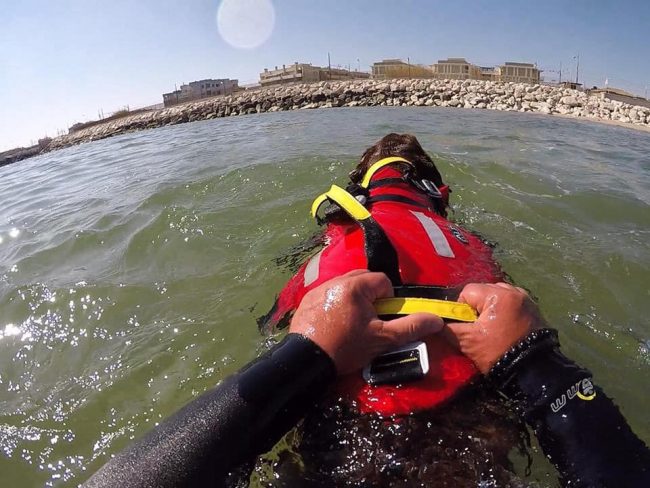 «L’allenamento non finisce mai, è senza stagione. Ho iniziato con lui, Buck, quando aveva 4 mesi e dopo 2 anni l’ho brevettato. – spiega il conduttore- In inverno si lavora soprattutto a terra (sull’obbedienza e il controllo) ma facciamo sessioni anche in mare. A Febbraio inizia la preparazione in acqua per la stagione. Io pratico anche la Rally-Obedience, la disciplina cinofila che serve per instaurare un buon rapporto di fiducia con il proprio cane attraverso il rinforzo positivo». Il rapporto di fiducia, infatti, è il primo pilastro della squadra. Poi, non basta solo la tattica per saper sfidare le onde ed essere efficienti. Servono intuito ed esperienza. «Un bravo soccorritore in mare deve essere sempre vigile e attento ma soprattutto deve saper prevenire che poi è la cosa fondamentale» conferma Christian Cavina.