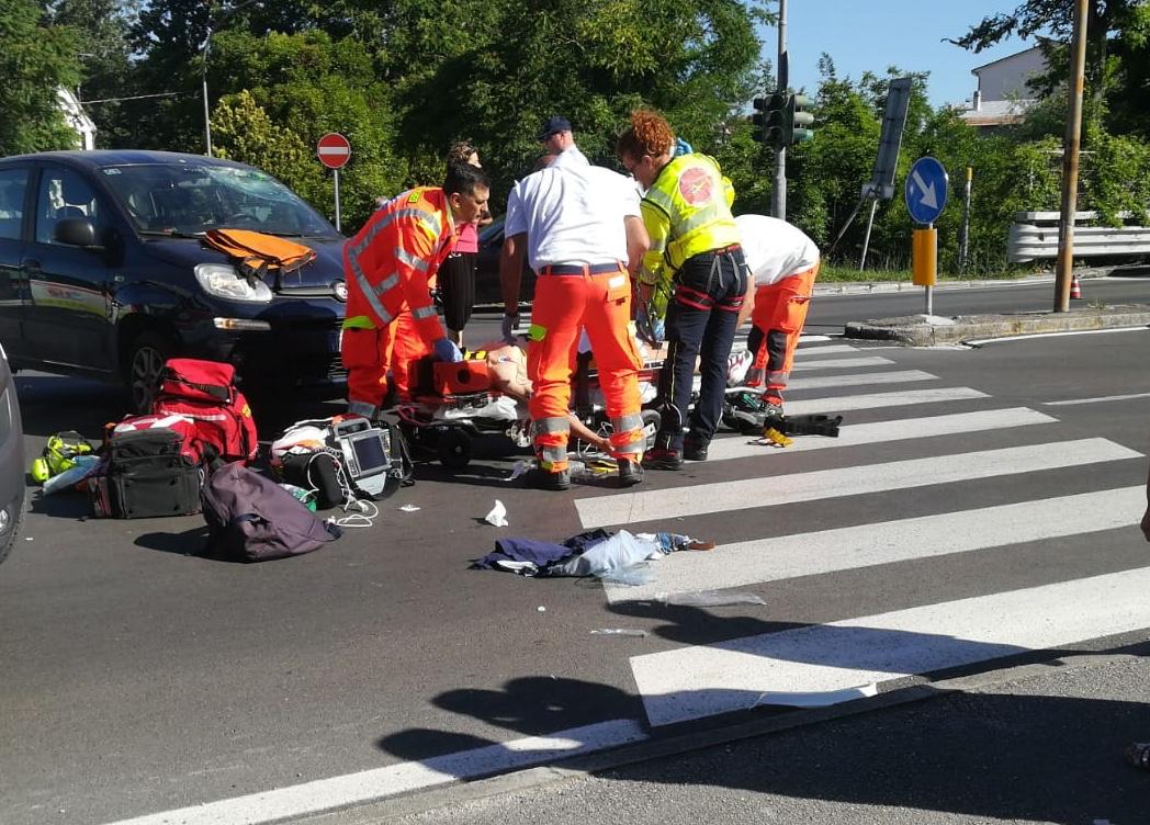 Un terribile incidente si è verificato verso le 9, a Jesi, al semaforo di viale del Lavoro-via San Giuseppe. Secondo una prima ricostruzione della dinamica, ora al vaglio della Polizia locale, un giovane di 16 anni di Camerata Picena in sella al suo motociclo (una Betamotor enduro 50) si è scontrato con una Fiat Panda condotta da una donna di 43 anni (P.Z. le iniziali).