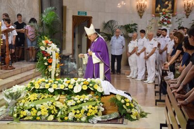 Si è chiesto poi: «Come si può morire così giovani mentre si sta lavorando? Un papa va al lavoro per portare da mangiare alla sua famiglia e non torna. È una cosa che spezza il cuore». Durante la cerimonia sono state raccolte delle offerte da donare alla moglie e ai figli piccoli della coppia. Un fondo è già stato fatto partire dall’associazione Stella Maris. Sulla bara, adagiata ai piedi delle scale della chiesa, era appoggiata la maglietta della Juventus di Cristiano Ronaldo, il bomber che Luca idolatrava.