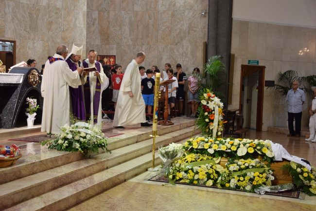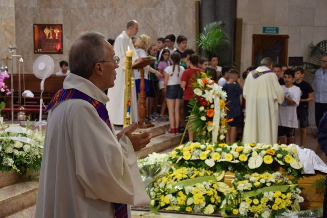 Il feretro di Luca con accanto Monsignor Spina