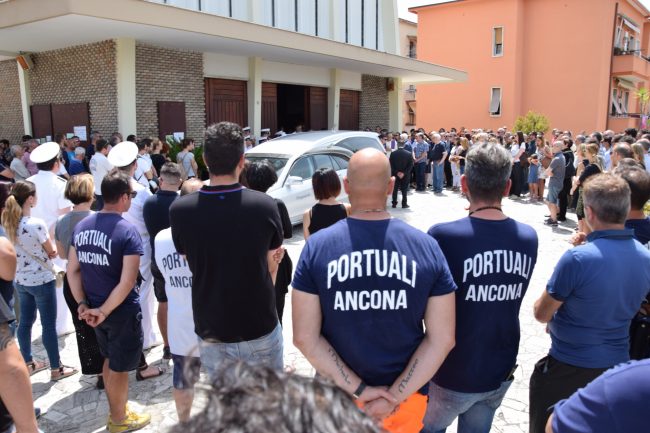 L’abbraccio del porto e di una comunità intera per ricordare Luca Rizzeri. Mentre questa mattina il feretro del giovane papà entrava nella chiesa delle Grazie, allo scalo dorico risuonavano le sirene in segno di cordoglio e rispetto per uno dei suoi figli caduti. In tanti hanno voluto partecipare alla cerimonia per ricordare Luca, soprattutto rappresentanti di quel mondo che il 33enne morto lunedì mattina aveva sposato, diventando agente marittimo per la Archibugi. Stava facendo il suo lavoro quando all’alba di lunedì è stato colpito dalla cima di una nave che stava attraccando alla banchina 23, morendo sul colpo. «Alla notizia della morte di Luca – ha detto l’arcivescovo Spina – è sceso il buio sul porto e sui nostri cuori. Siamo rimasti attoniti e smarriti da questo momento di morte e lutto».