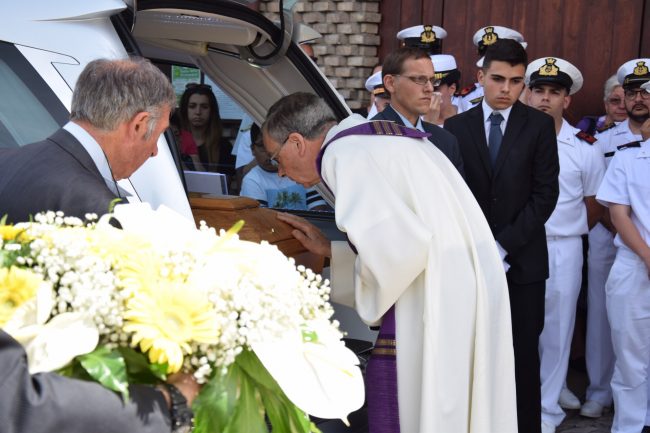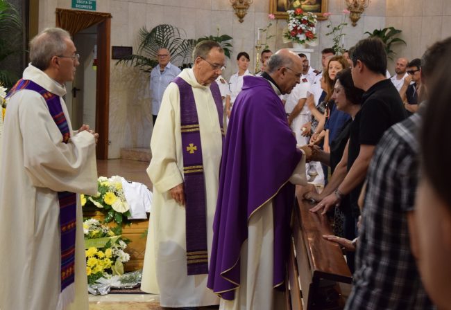 Si è chiesto poi: «Come si può morire così giovani mentre si sta lavorando? Un papa va al lavoro per portare da mangiare alla sua famiglia e non torna. È una cosa che spezza il cuore». Durante la cerimonia sono state raccolte delle offerte da donare alla moglie e ai figli piccoli della coppia. Un fondo è già stato fatto partire dall’associazione Stella Maris. Sulla bara, adagiata ai piedi delle scale della chiesa, era appoggiata la maglietta della Juventus di Cristiano Ronaldo, il bomber che Luca idolatrava.