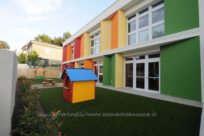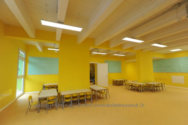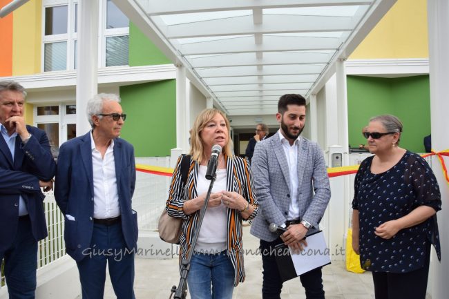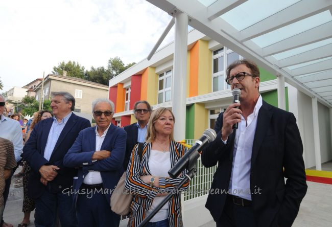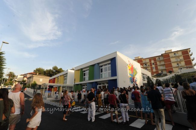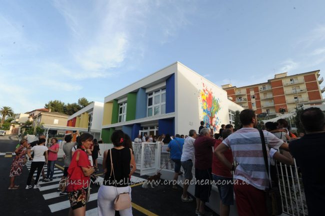 «A vedere questo edificio, viene voglia di tornare piccoli per poter frequentare una scuola così». E non ha tutti i torti  la sindaca di Ancona Valeria Mancinelli, che oggi (15 giugno) ha inaugurato le nuove scuole Mercantini di Palombina, struttura colorata e moderna, pronta a riaprire i battenti da settembre. Le scosse del 2016 avevano reso la struttura inagibile, e pareva fosse giunto il momento dei titoli di coda. Invece l’istituto è risorto in un edificio talmente all’avanguardia e sicuro da poter ospitare le attività della protezione civile in caso di calamità. All’inaugurazione delle scuole primarie e dell’infanzia 2.0 di Palombina – con benedizione del parroco e taglio del nastro –, erano presenti alunni, genitori, insegnanti e abitanti del quartiere, che si sono battuti ed hanno collaborato con l’amministrazione comunale per riavere indietro un istituto da sempre cuore ed anima della comunità.