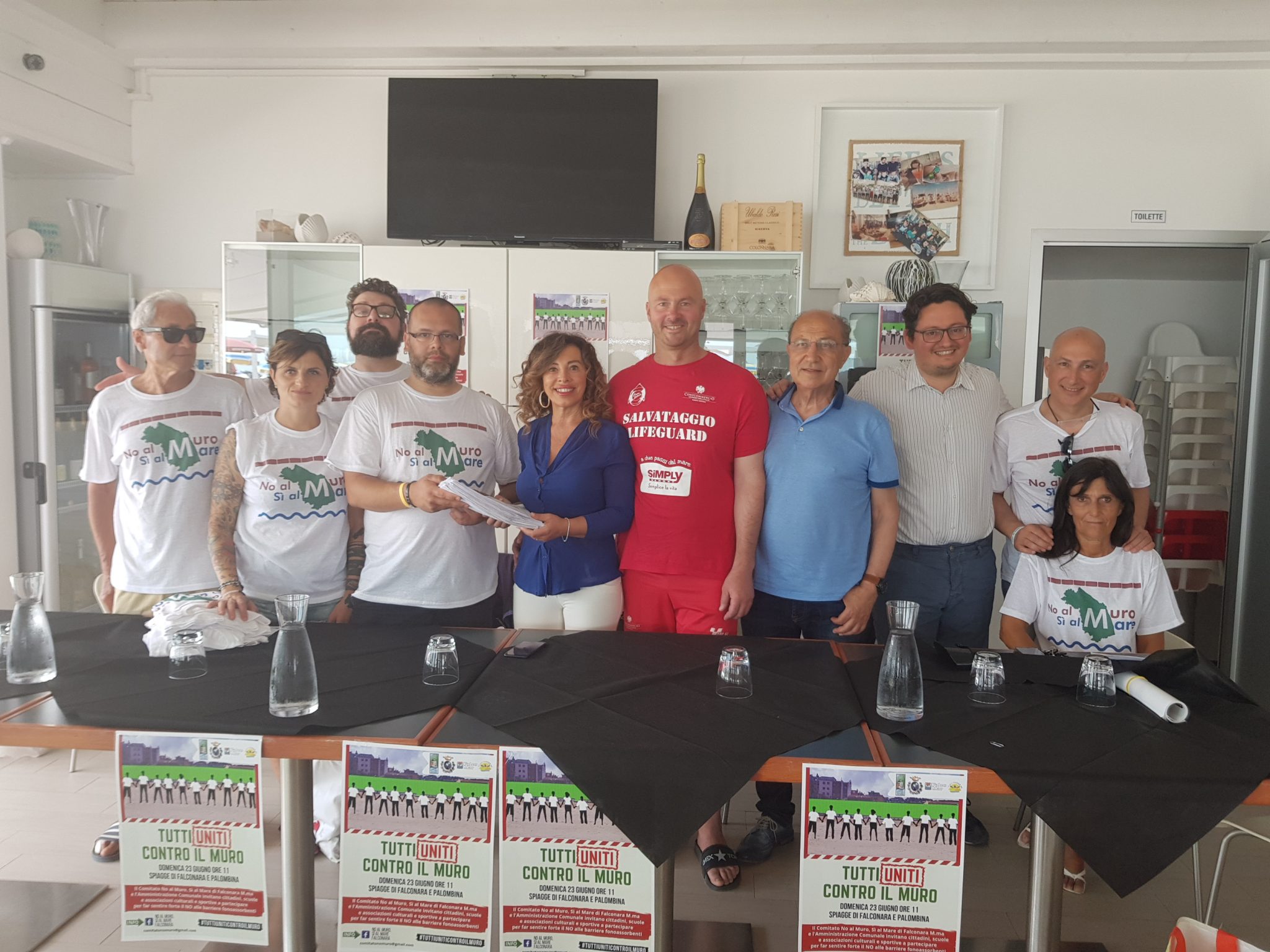 Cittadini, amministratori comunali, operatori balneari e associazioni di promozione turistica si danno appuntamento in spiaggia per prendersi per mano e dire ‘No al muro, Sì al mare’. Domenica 23 giugno a partire dalle 11 il litorale di Falconara e quello di Palombina Nuova, fino al ponte di Collemarino, diventeranno simbolo della battaglia contro le barriere antirumore che Rfi vorrebbe realizzare lungo la linea ferroviaria per abbattere l’inquinamento acustico. L’opera, oltre ad avere riflessi negativi sull’ambiente e sul valore degli immobili che si affacciano sui binari, creerebbe un danno paesaggistico perché separerebbe anche visivamente le città della costa dal mare e proprio per questo è stata scelta la spiaggia per mandare un segnale concreto, per dire ‘no’ senza condizioni. La manifestazione ‘Tutti uniti contro il muro’ è stata presentata questa mattina allo stabilimento La Vela dagli organizzatori che sono il comitato ‘No al muro, Sì al mare di Falconara’ insieme al Comune di Falconara, con il sostegno del consorzio Falcomar che raccoglie gran parte degli operatori balneari falconaresi e della Pro Loco Falconamare.