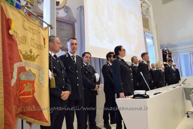 Innovazione, formazione, maggiore presenza sul territorio: questi i temi del 160esimo anniversario di fondazione del Corpo di polizia locale, celebrato questa mattina nella sala del Consiglio comunale, a Palazzo degli Anziani, alla presenza di autorità civili, religiose e militari e presieduto dal sindaco Valeria Mancinelli e dalla comandante Liliana Rovaldi. Durante la cerimonia, la responsabile del Corpo ha tracciato i risultati ottenuti nell’ultimo anno, ripercorrendo anche gli eventi fondamentali che hanno tenuto impegnati gli agenti, come il Bomba Day o i quattro giorni della fiera di San Ciriaco. Non da meno, la comandante ha ricordato le indagini portate avanti dagli agenti, come quella che ha consentito di eliminare gli abusi edilizi al Passetto, davanti ad alcune grotte, con l’abbattimento di colonne edificate senza alcuna autorizzazione. Tra i nuovi progetti, l’introduzione dei palmari che a breve verranno distribuiti agli agenti e attraverso cui sarà «possibile comunicare telematicamente con la centrale operativa la chiusura degli interventi con il suo esito. Questo farà sì – ha detto la Rovaldi – che in qualsiasi momento si potrà’ avere la situazione reale delle pattuglie sul territorio e la loro disponibilità’ per nuovi interventi».