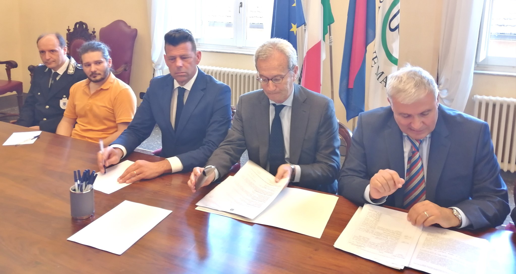 Al termine, il Prefetto e i Vertici provinciali delle Forze di polizia, insieme col Sindaco, in qualità di Presidente di A.N.C.I. Marche, hanno firmato il “Protocollo d’intesa territoriale per la sicurezza delle discoteche”, con i rappresentanti delle associazioni dei gestori di locali da ballo (SILB-FIPE- Confcommercio e Fiepet Confesercenti) e dei servizi privati di vigilanza, sulla base dell’accordo quadro stipulato a livello nazionale. Il protocollo prevede, tra l’altro, l’impegno degli operatori del settore a collaborare con le Forze di polizia per evitare l’ingresso nei locali di persone pericolose per la sicurezza o che tengano condotte incompatibili con l’ordinata fruizione del locale.