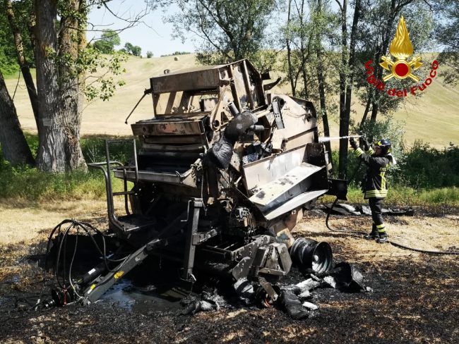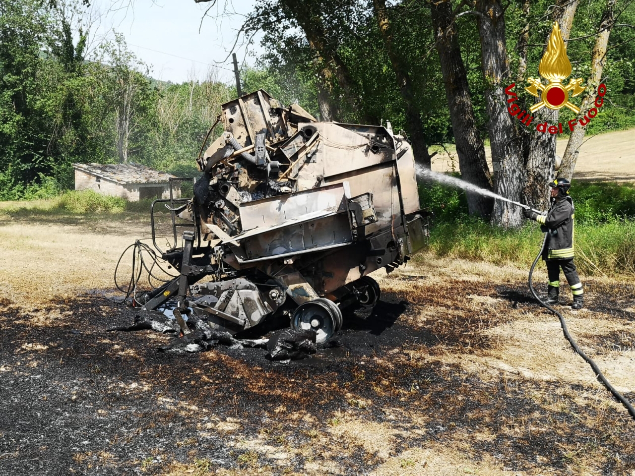 I vigili del fuoco sono intervenuti oggi pomeriggio alle ore 15 circa per domare un incendio di una imballatrice per fieno scoppiato in località Avenale di Genga. La squadra sul posto ha spento le fiamme che hanno completamente distrutto il mezzo agricolo ed evitato la propagazione dell’incendio. Non si segnalano persone coinvolte.