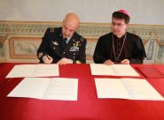LORETO – L’8 dicembre il cardinale Parolin aprirà la Porta Santa in basilica. L’annuncio stamattina dell’arcivescovo delegato pontificio, mons. Fabio Dal Cin durante la firma dell’Intesa tecnica tra la Delegazione Pontificia per il Santuario della Santa Casa e l’Aeronautica Militare Italiana per l’organizzazione degli eventi del 2020 celebrativi del centenario della proclamazione della Vergine nera patrona di chi viaggia in volo