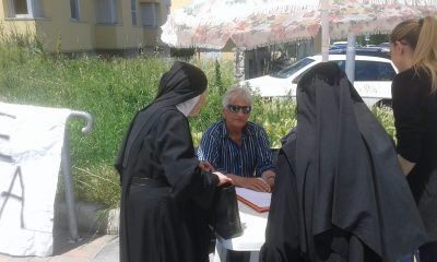 Vinicio Arteconi (Fabriano Progressista) al banchetto delle firme della petizione lanciata per riaprire il reparto di Pediatria