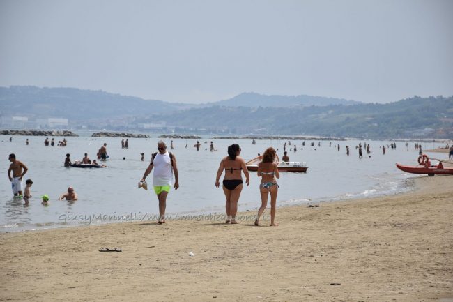Non li hanno fermati nemmeno le nuvole, il tempo incerto e qualche goccia di pioggia. Anche stamattina, sotto un sole pallido, i ‘forzati’ della tintarella non hanno rinunciato a una nuotata in mare e a una passeggiata in spiaggia, lungo il litorale di Palombina.